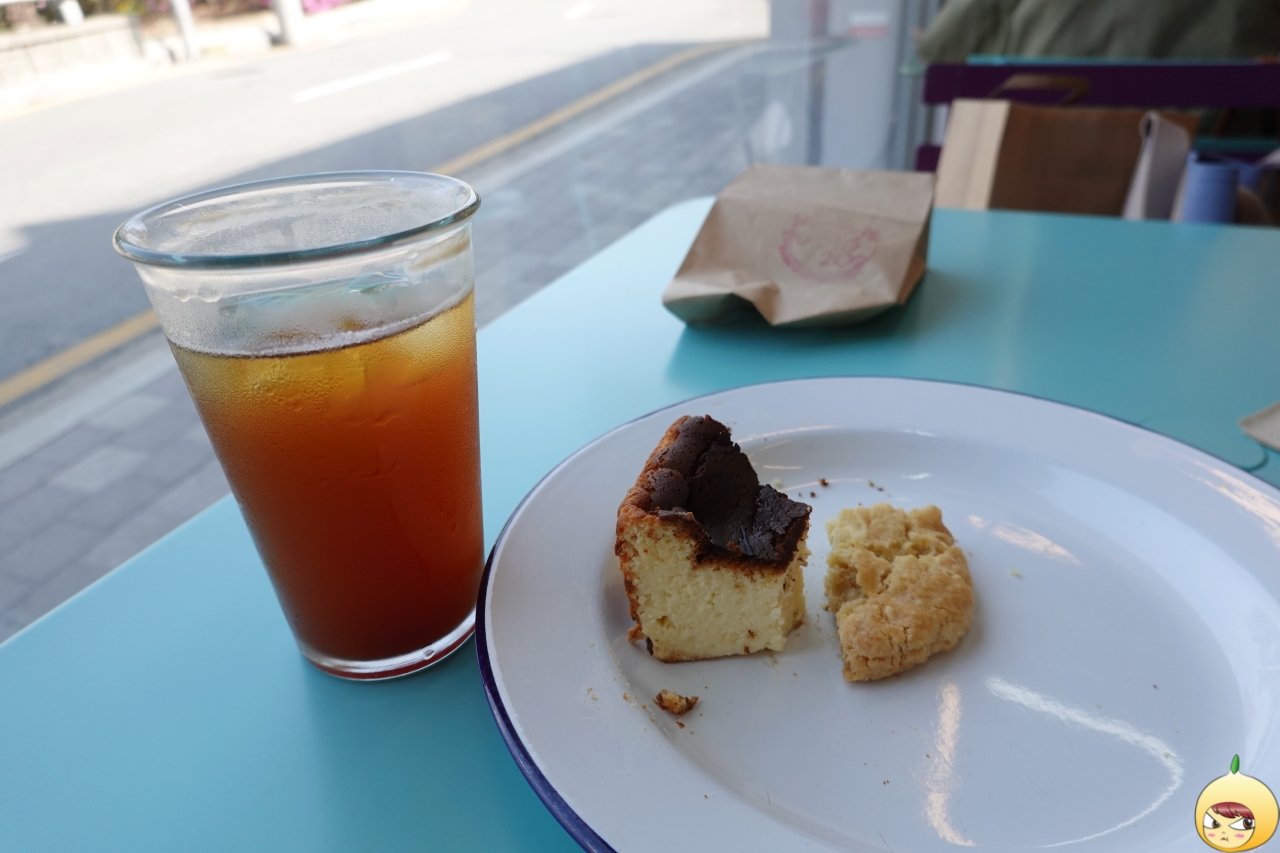무슨 빵이 먹어야 하나 고민에 고민을 거듭하다, 먼저 음료부터 골랐다. 차갑고 쓴 커피에는 뭐가 좋을까? 답을 찾는데 그리 어렵지 않았다. 커피에는 치즈케익이고, 꾸덕한 바스크치즈케이크(7,000원)는 더할나위 없는 선택이다. 좀 더 꾸덕했어도 좋지 않았을까 싶은데, 이는 30% 정도 먹었을때 느낌이다. 50%가 넘어가니, 농도가 더 진했다가는 다 먹지 못하고 남겼을 거다. 즉, 지금의 꾸덕함이 딱 맘에 들고 쓴 커피와는 찰떡이다.