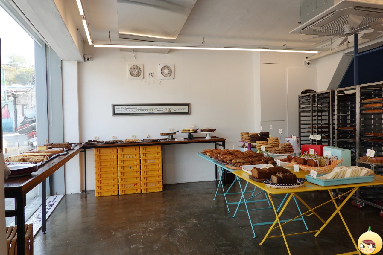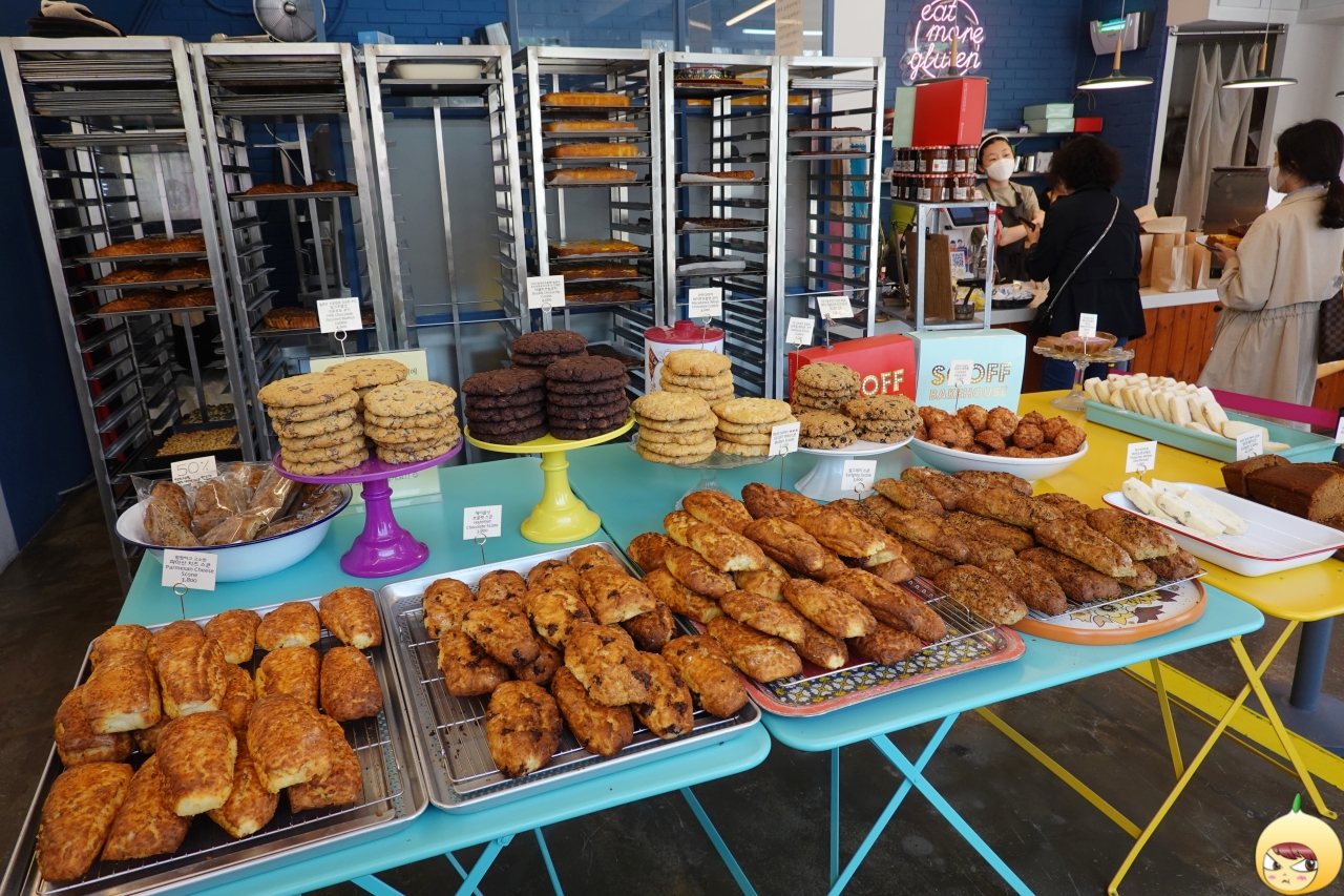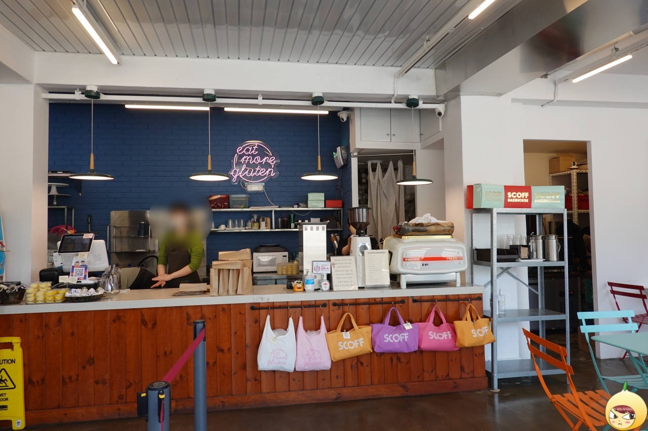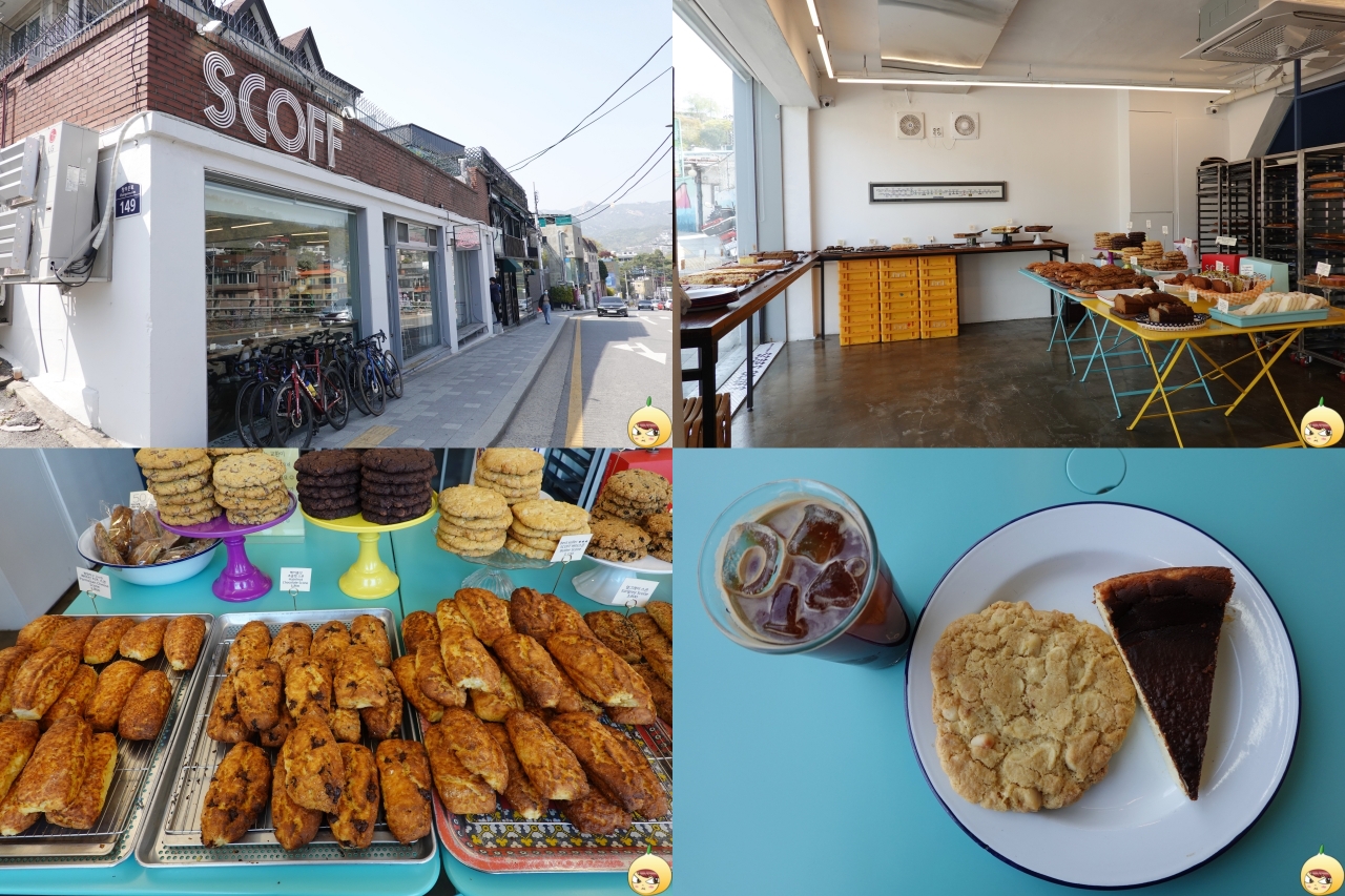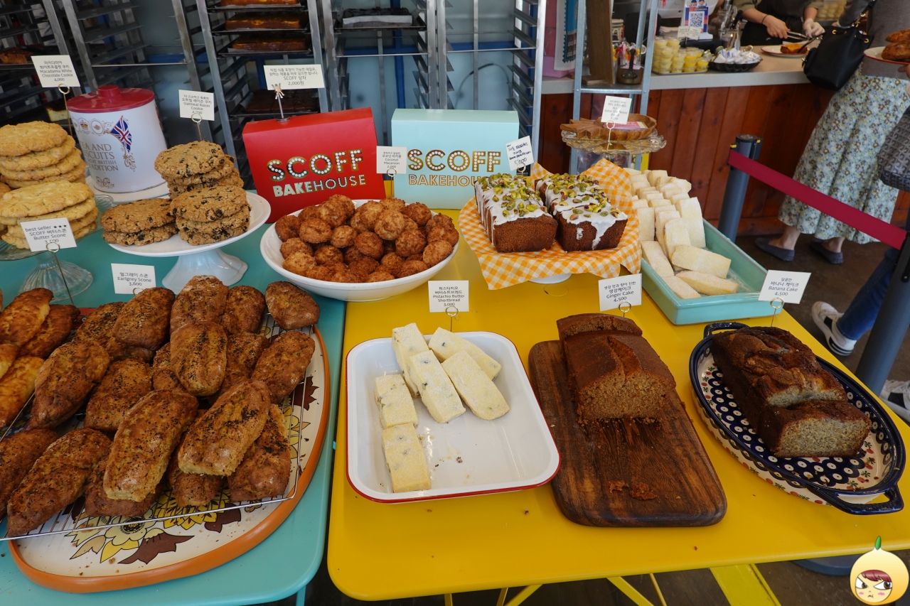 얼그레이스콘까지 총 4가지가 있다. 스콘은 영국에서 유래된 빵으로, 스코프는 영국식 스콘을 만드는 빵집이다. 커다란 크기에 놀라 하나씩 다 쟁반에 올리고 싶지만 아직 못본 빵이 남아 있어 꾹 참았다. 하얀 녀석(?)은 피스타치오 버터쇼트브레드이고 모양이 비슷한 녀석(?)은 생강케이크와 바나나케이크다.