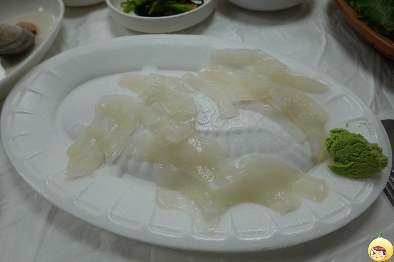 그냥 오징어와 반건조 갑오징어는 많이 먹었는데, 제철 회는 처음이다. 일반 오징어와 별차이가 없는 줄 알았는데, 하늘과 땅 차이다. 두툼한 두께는 기본, 보기에는 단단하고 탄력이 있지만, 입에 넣으면 야들야들하니 부드럽게 넘어간다. 몸체에 비해 짧은 다리는 쫄깃하지만 한치보다 더 짧아서 양이 많지가 않다. 그래서 몸통에 집중하기로 하고, 다리는 볶음을 위해 먹지 않았다.