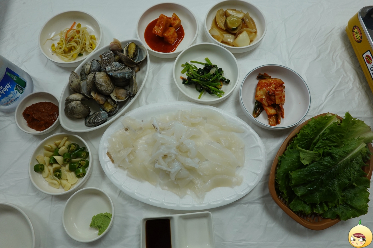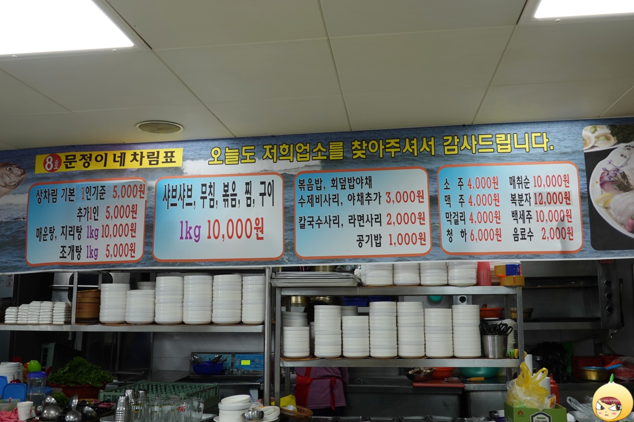 점심시간이 끝난 뒤라서 식당은 한산하다. 혼밥하기 딱 좋은 이 온도, 습도, 분위기다. 따로 주문을 할 필요는 없고, 서비스로 받은 전복을 주고 자리에 앉았다. 참, 상차림은 1인 5,000원이다. 갑오징어는 결제를 했으니, 여기서 추가 주문을 하지 않으면 오천원만 내면 된다.