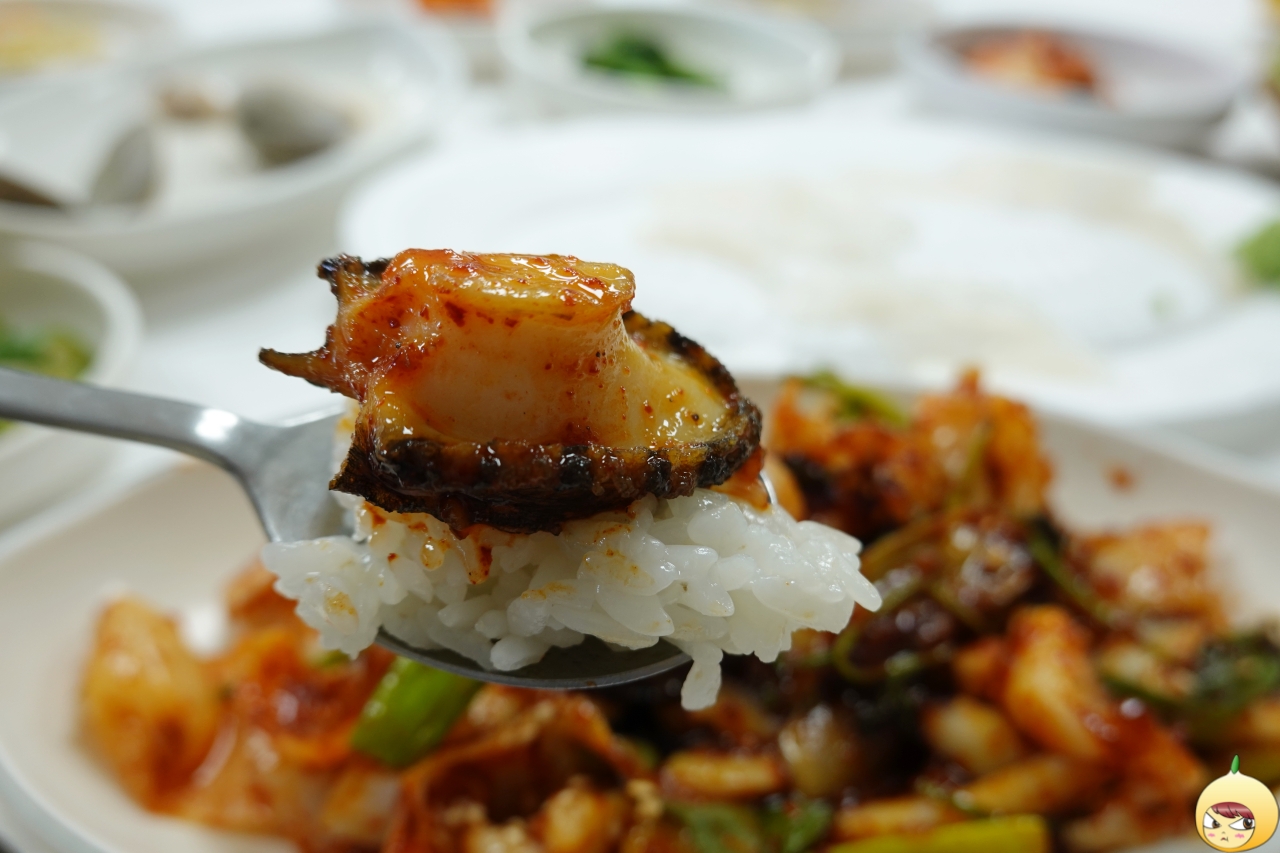 볶음을 안먹었더라면 엄청 후회했을 거다. 양념을 더하니 단맛과 감칠맛이 최대치가 됐다. 회와 달리 익은 갑오징어는 더 단단해졌지만, 식감은 여전히 야들하니 부드럽다. 여기에 식감 대마왕(?) 아기전복까지 더하니 호사스러운 밥상이 됐다. 늦은 점심이자 첫끼였는데, 배고픔을 참기 잘했다 싶다. '널 만나기 위해 아침부터 쫄쫄 굶었나 보다.'
