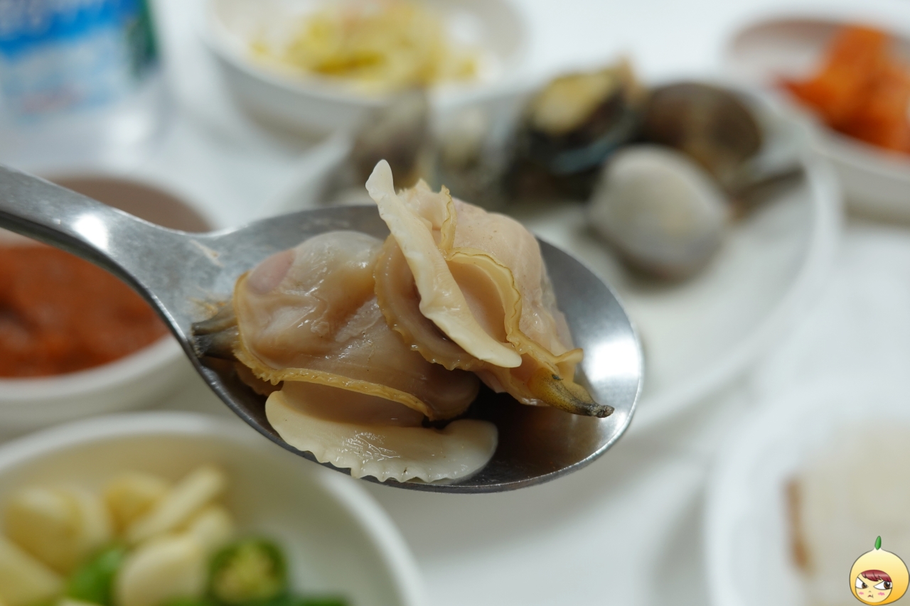 서비스로 받은 조개와 전복으로 탕을 끓일까 했더니, 살짝 삶아서 내준다. 그나저나 손질을 따로 하지 않았는지 전복이빨이 그대로다. 이건 제거해야 먹을 수 있고, 너무 살짝 삶았는지 내장이 완전 레어다. 내장에서 살짝 비릿한 냄새도 나기에, 이빨을 제거하고 볶음용으로 따로 모아뒀다.