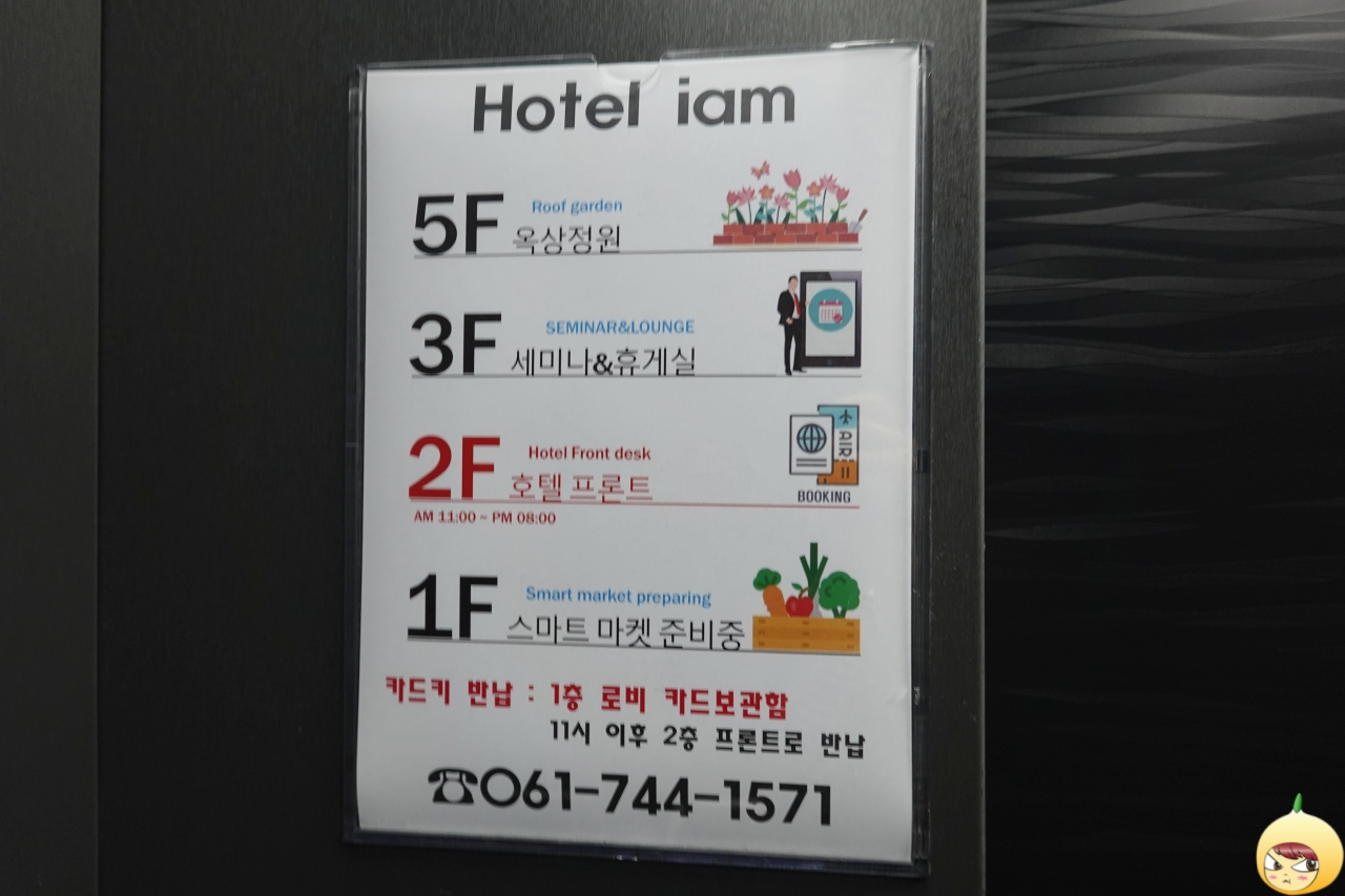 호텔 선택에 있어 역세권도 은근 따지는 편이다. 기차역에서 숙소까지 이동거리가 짧아서 좋고, 캐리어도 맡길 수 있어서다. 이번 순천여행도 순천역에서 5분 거리에 있는 호텔아이엠으로 잡았다. 2층 프론트에서 체크인을 하고 4층으로 올라간다.