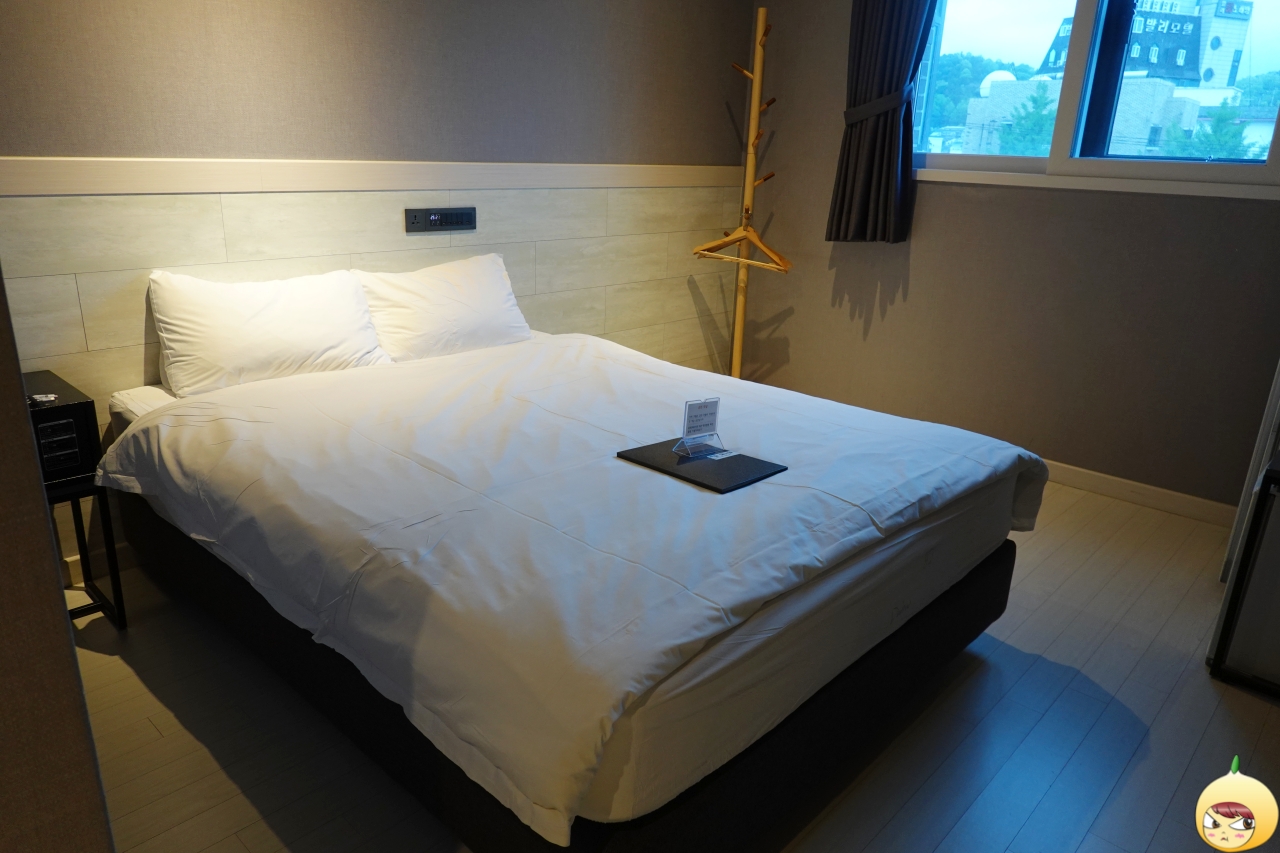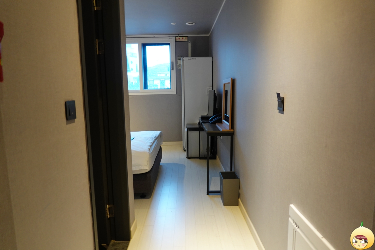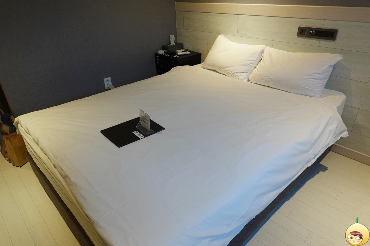 문을 열면 신발을 벗는 곳 옆으로 욕실이 있고, 욕실 옆 좁은 통로를 지나면 바로 침대가 나온다. 더블룸이라서 공간은 그리 넓지 않다. 하지만 혼자서 지내기에는 적당하다. 침대가 딱딱하다는 후기가 많던데, 딱딱보다는 단단이라고 해야 할까나? 푹 꺼진 듯한 느낌이 없어서 좋았다. 침구는 까슬까슬해서 좋았고, 침대와 달리 베개는 솜처럼 폭신폭신하다.