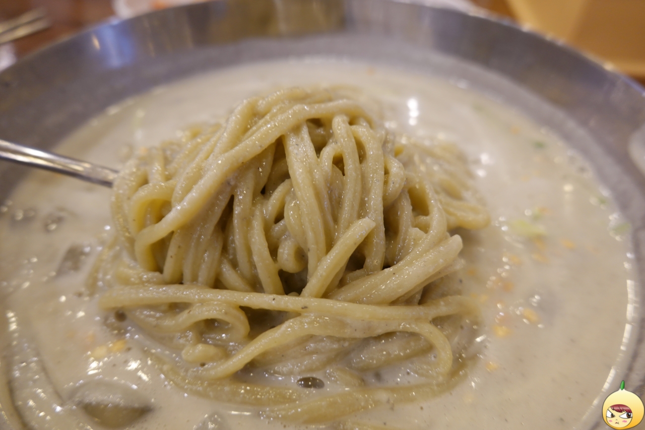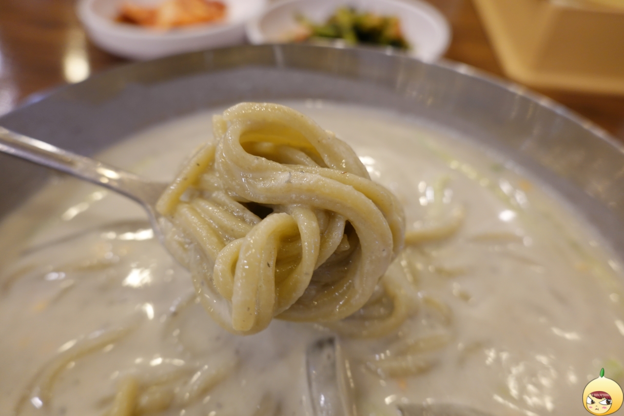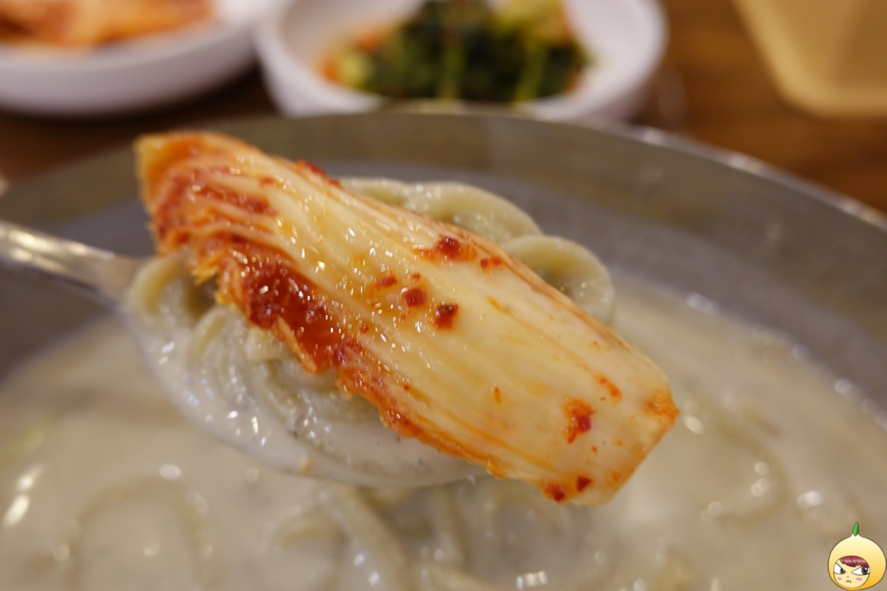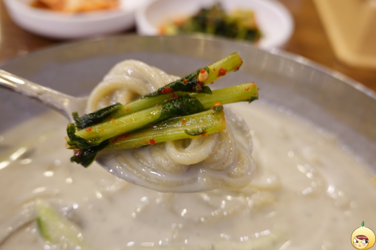 콩물 때깔을 보아하니, 백태(메주콩)에 검은콩을 섞은 듯 싶다. 주인장에게 직접 물어보지 않아서 확실하지 않다. 국수 역시 때깔을 보아하니, 밀가루로만 만든 면발은 아니라는데 50원을 걸어도 잃지는 않겠지. 밀가루 냄새는 일절 없고, 탱글탱글 쫄깃해서 입안 가득 넣고 먹으면 포만감에 겁나 행복해진다.