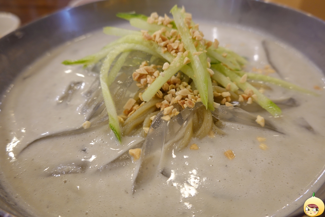 콩물은 묽지도 걸쭉하지도 않은 그 중간 어디쯤으로, 두유보다는 농도가 진하다. 국수를 먹기 전에 콩물과 우뭇가사리를 먼저 먹는다. 우뭇가사리는 곤약처럼 별맛은 없지만, 콩물과 함께 먹으면 매우 잘 어울린다. 무지 더운 여름에는 콩물에 우뭇가사리만 넣어서 먹는데, 빙수와 달리 시원함에 든든함까지 별미다.
