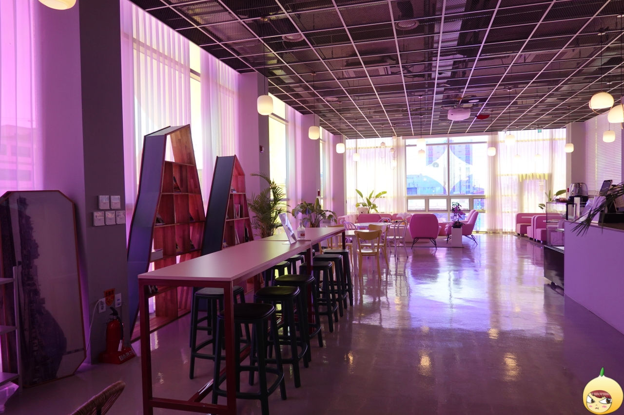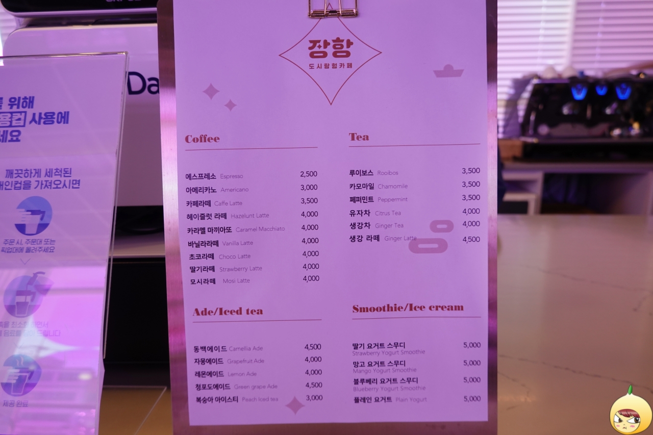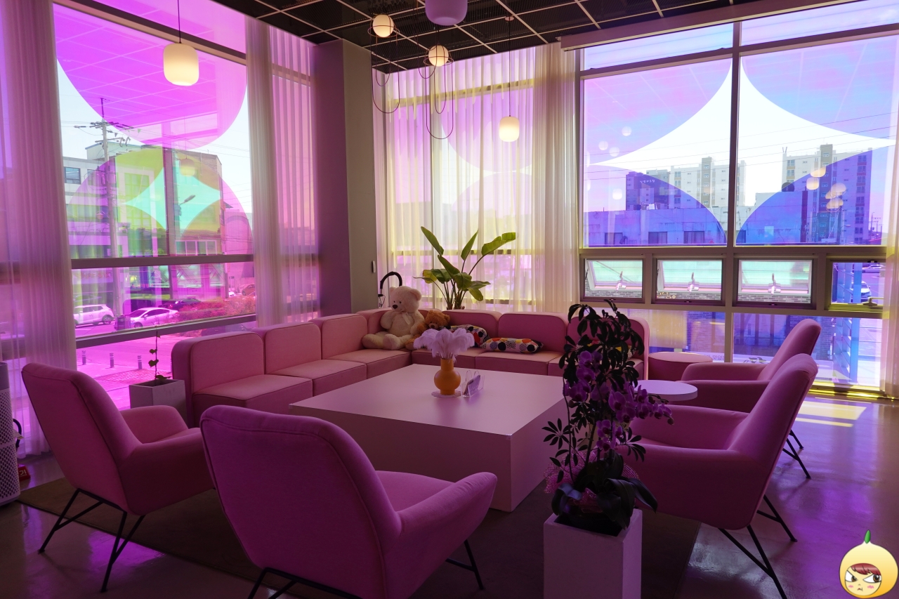 장항도시탐험역에 있는 장항도시탐험카페다. 밖에 설치한 셀로판테이프(?) 때문인지, 카페 조명이 핑크핑크하다. 여성취향이라고 하고 싶은데, 요즘은 핑크를 좋아하는 남성분들도 많으니, 모든 이들을 저격했다고 해야겠다. 아늑하고 따뜻함이 느껴지는 공간이다.