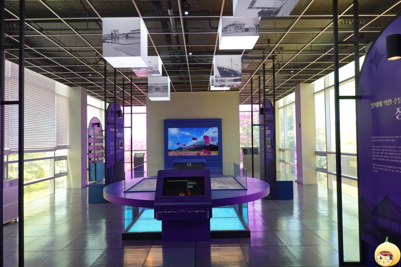 카페 건너편 공간은 장항이야기뮤지엄으로 장항의 도시 형성과 산업의 흐름을 알 수 있는 역사문화 공간이다. 1931년 11월 1일 첫 열차가 장항역에서 출발을 했다. 연도를 보면 알 수 있듯, 장항역은 일제가 조선에서 수탈한 곡식을 가져가기 위한 교통수단으로 활용했다. 장항역에서 장항항을 지나 일본 오사카로 쌀을 반출하기 전, 보관할 장소가 필요했다.