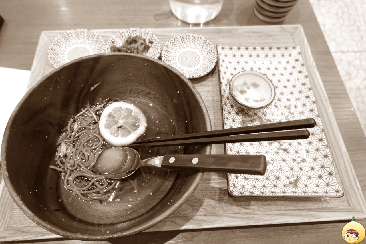 메밀로 만드는 평양냉면은 구수한 메밀향이 살아 있는데, 비율의 차이일까? 육수의 단맛때문인지, 유자소바는 메밀향이 거의 나지 않는다. 툭툭 끊기는 맛은 있는데, 평냉과는 많이 다르다.