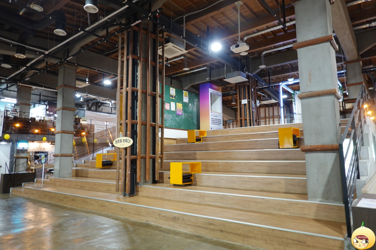 VR스퀘어는 눈으로만 즐기고, 청춘창고로 들어왔다. 이곳은 1, 2층으로 되어 있는데, 1층은 주로 카페와 음식점이 있다. 코로나19가 없었던 시절에는, 푸드트럭이 실내로 들어온 듯, 음식을 파는 곳이 많았다. 그런데 지금은 예전과 달리 너무 썰렁하다.