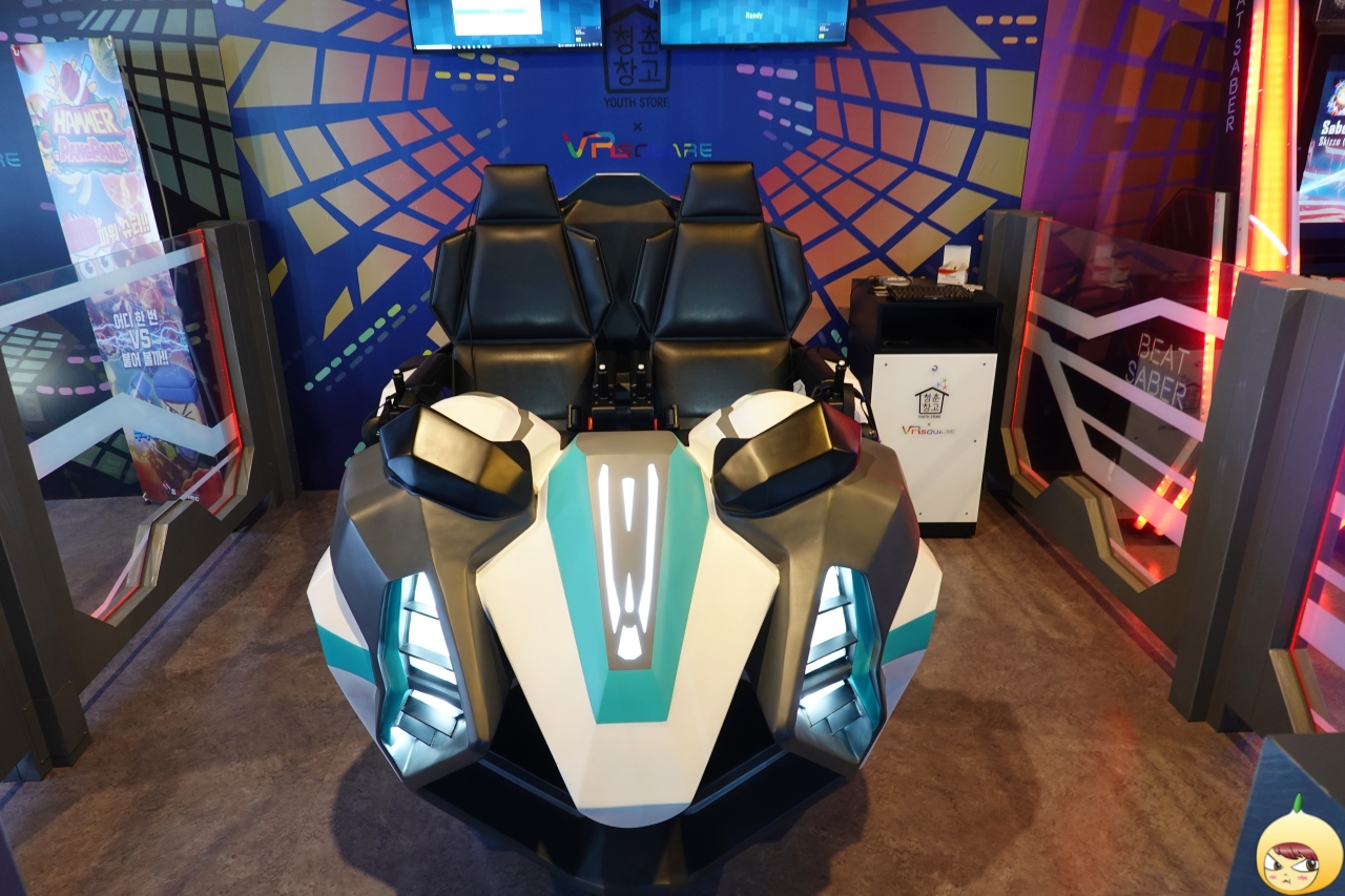 우주선 내부, 아니면 영화세트장, 둘다 아니다. 여기는 창춘창고 옆에 있는 또다른 창고로 가상현실을 즐길 수 있는 VR스퀘어다. VR테마파크는 서울에서 한번 체험해본 적이 있어 어떤 곳인지 잘 안다. VR 장비를 착용하면, 좀비를 잡는 헌터가 되거나, 번지나 롤러코스터를 탈 수 있다. 더불어 화려한 레이싱에 슈팅 게임도 가능하다.