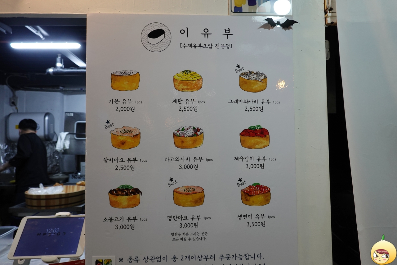 카페만 있고 음식점은 다 사라진 줄 알았다. 청춘창고내 유일한 밥집이랄까? 이유부는 대형 유부초밥 전문점이다. 유부초밥은 서울에서도 먹을 수 있기에 끌리지 않았는데, 공복이라서 배가 매우 몹시 고프다. 선택을 할 수 없으니 어쩔 수 없다. 그나마 연신 울리는 배달앱 소리가 '먹어도 후회하지 않을거야'라고 속삭이는 거 같다.