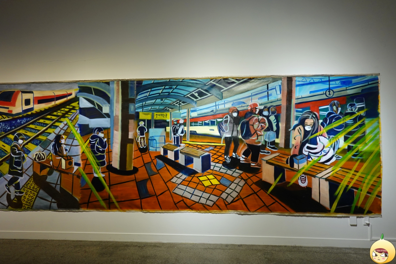 이번 작업은 동화 속 주인공들이 몸이 작아져 새로운 세계를 경험하듯 스스로 아주 작은 존재가 되면 어떨까라는 상상에서 시작, 비둘기와 고양이, 개의 시점에서 바라본 대전역을 그렸다. 화면은 과장스러운 크기의 동상과 사람들, 포장마차와 간판으로 채워지며 파랑과 노랑, 회색이 주를 이룬다. 이는 동물이 인식 가능한 색은 인간에 비해 극히 제한적이라는 것에 근거한 것으로 개의 경우 4개의 색으로 세상을 본다고 한다.