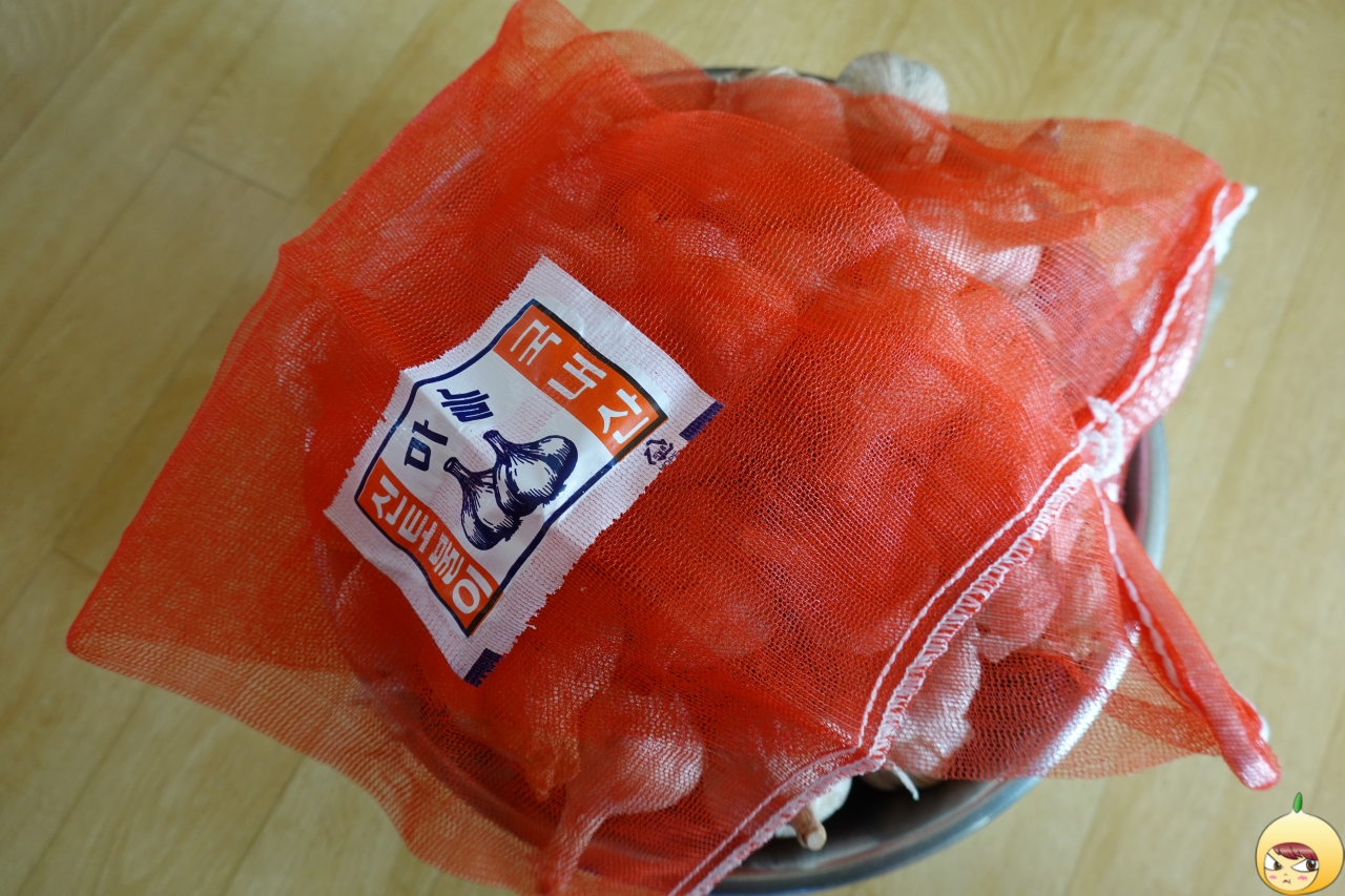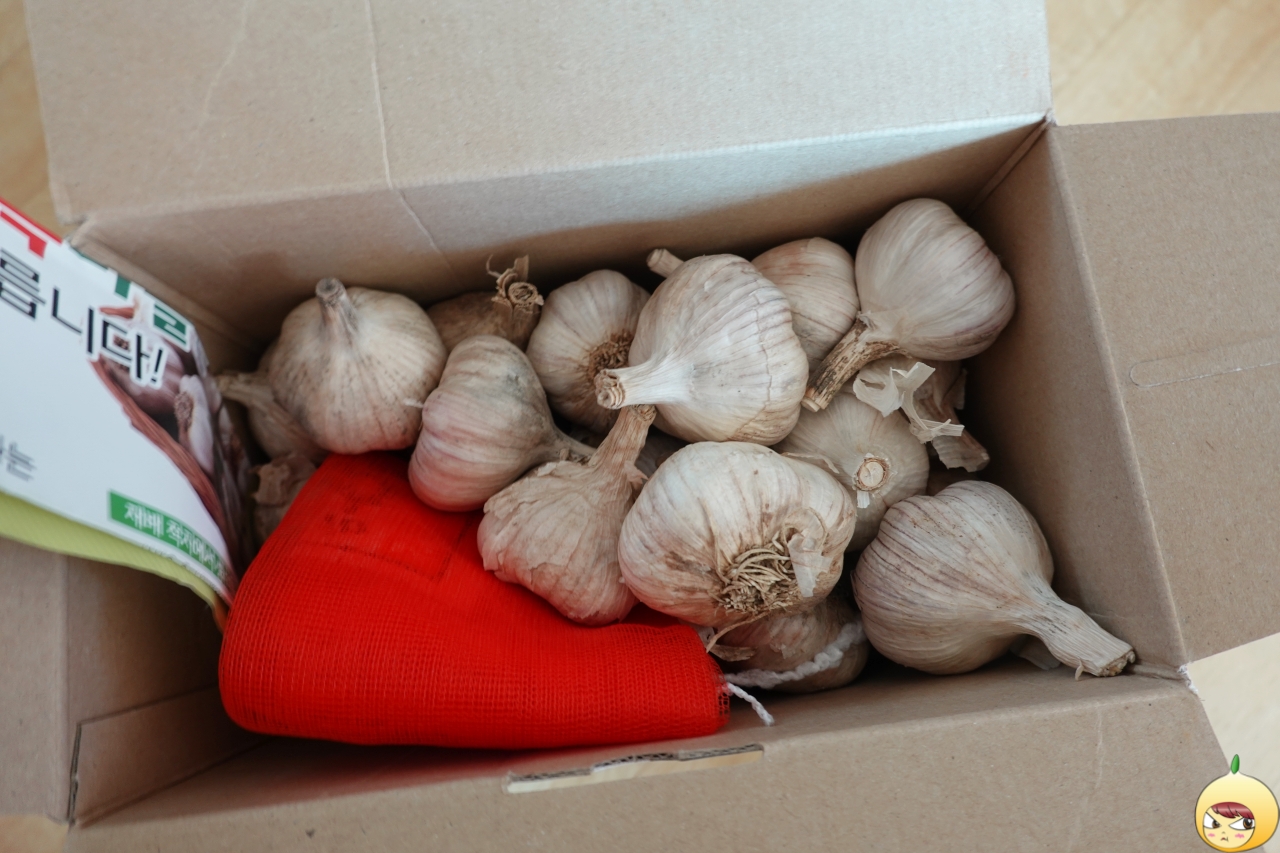 박스에는 마늘과 함께 안내문과 보관용 빨간 봉다리가 들어있다. 3kg로 무게는 알지만, 몇개가 들어 있는지는 모른다. 그래서 박스에서 커다란 양푼으로 옮기면서 숫자를 세니, 72개가 나왔다. 크기는 대체로 일정하지만, 작은 녀석도 있고, 살짝 놀린 녀석도 있다.