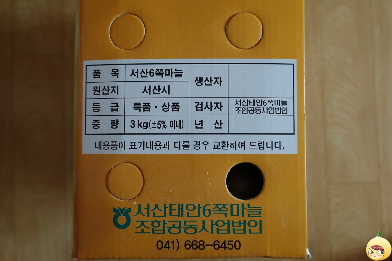 충남 농사랑에 21년산, 22년산 마늘이 있고, 가격은 22년산이 더 비싸지만 묵은 마늘보다는 햇마늘이라서 3kg를 주문했다. 어떻게 올까 궁금했는데 줄기라고 해야 하나? 그 부분은 없이 마늘만 알차게 담아서 보냈다. 표시 정보에 등급은 특이며, 원산지는 충남 서산, 품목은 서산6쪽마늘 그리고 중량은 3kg로 잘 나와 있다.