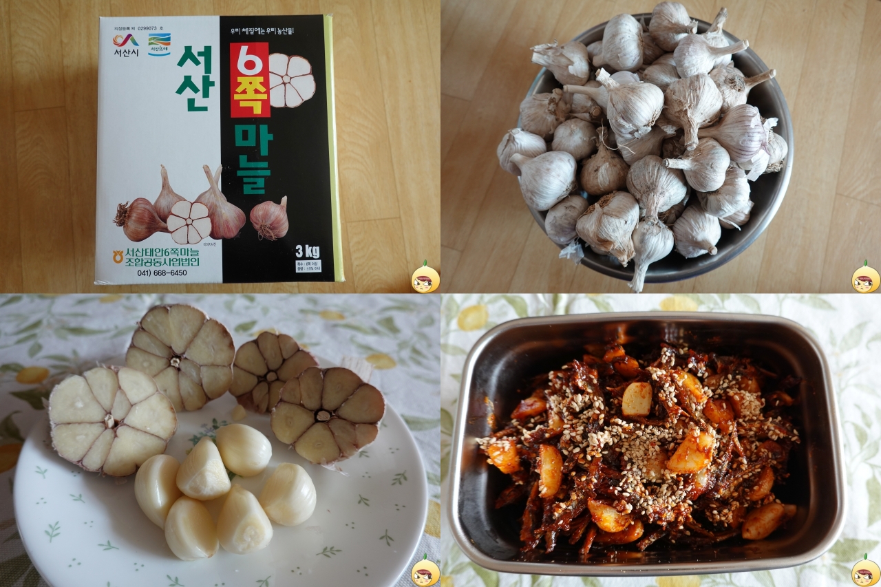 정말로 6쪽인지 반으로 잘라 봤는데, 뽑기 운이 없는지 죄다 8쪽이다. 그런데 자르지 않고 깐 마늘은 정확히 6쪽이 나왔다. 서산 6쪽마늘은 고유의 재래종으로 한지형 마늘의 원조이며, 알리신 함량이 높아 유해균에 대한 항균 능력이 우수하다고 안내문에 나와있다.