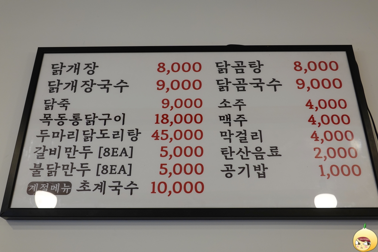 삼계탕만 없을뿐, 갈비만두를 빼고는 전부 닭으로 만든 음식이다. 초계국수가 끌리지만, 처음 방문이니 대표 메뉴를 먹어야 한다. 고로 닭개장(8,000원)을 주문했다.
