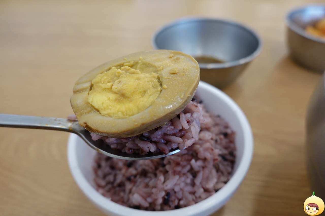 겉절이 스타일의 배추김치가 나올 줄 알았는데 볶음김치가 나왔다. MZ세대의 입맛을 잡았다고 해야 할까나? 편의점에서 파는 볶음김치 맛과 거의 흡사하다. 계란장조림은 혼밥이라서 반개가 나온 듯 싶다. 밥은 흑미밥인데, 고슬밥은 아니고 살짝 진밥이다.