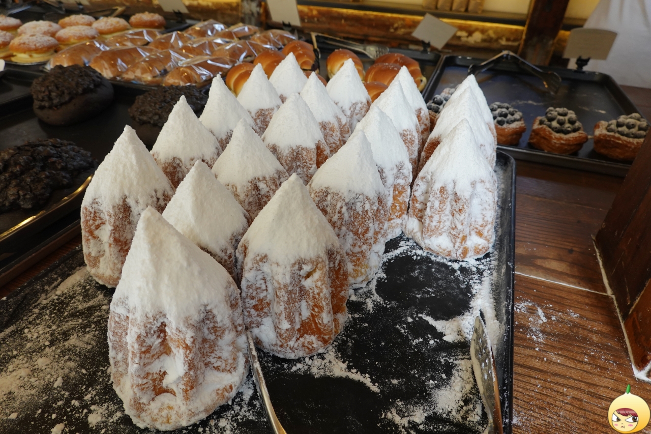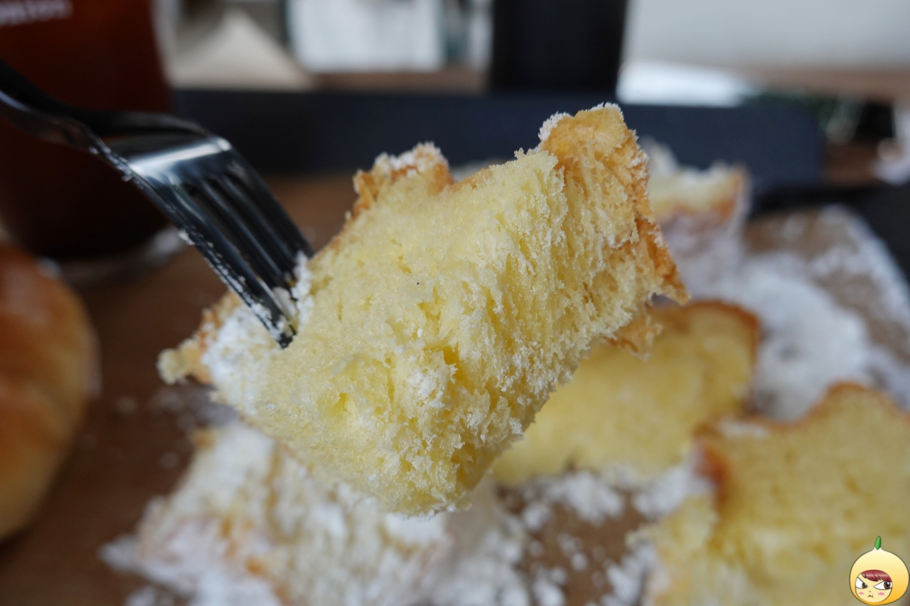어니언의 시그니처 팡도르(5,500원)다. 시그니처라고 하니 묻지도 따지지도 않고 쟁반에 담았다. 달걀, 버터, 바닐라빈이 가득 들어간 카스텔라 빵 위에 직접 만든 슈가파우더를 듬뿍 얹은 빵이다.