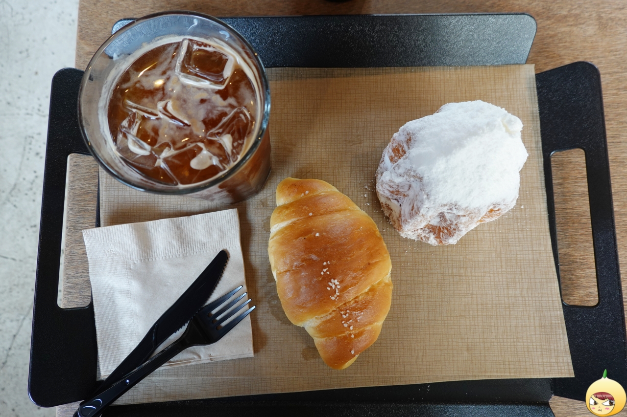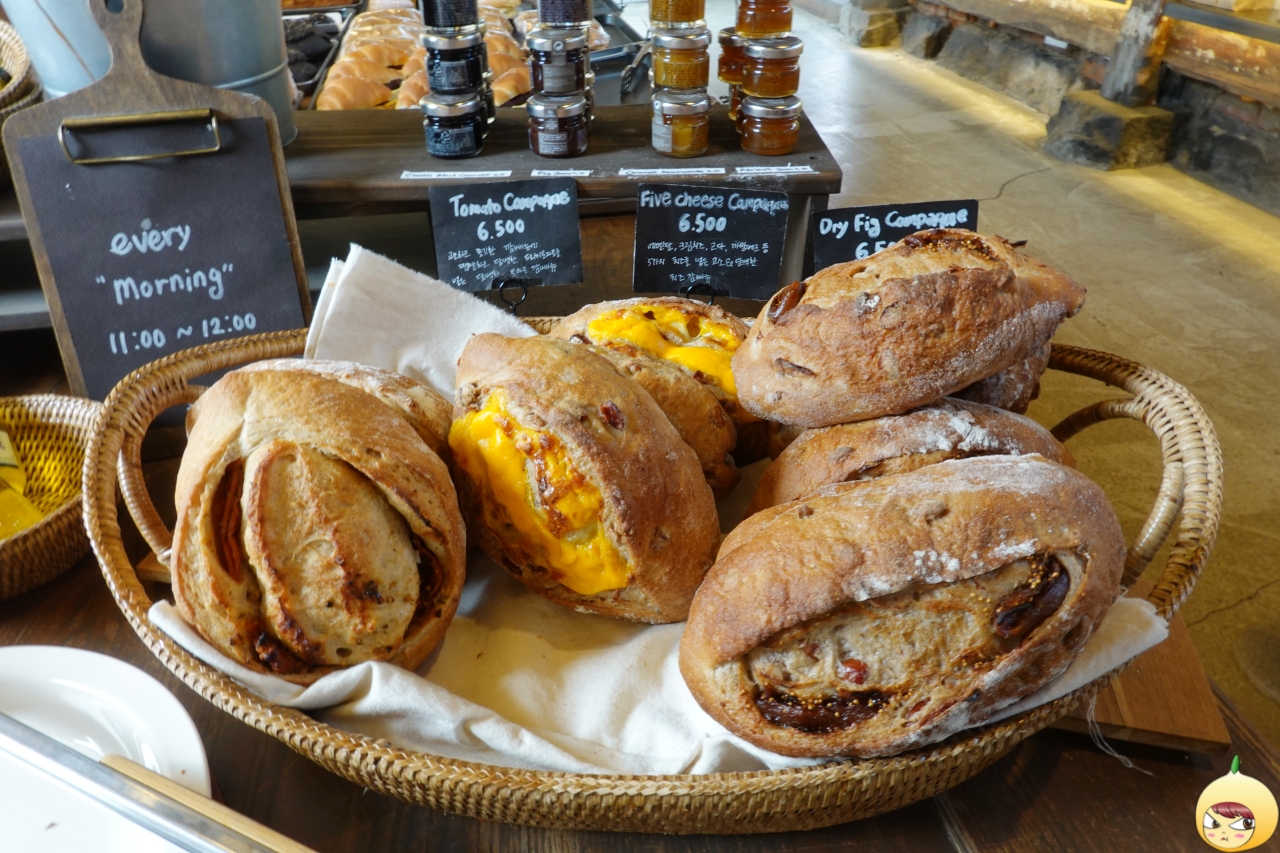 빵종류가 더 많지만, 나름 엄선한 녀석(?)들만 담았다. 위대하지 않으니 다 먹을 수는 없고, 이 중에서 2개를 고르고 시원한 아메리카노를 주문했다. 참, 빵 진열대 벽면은 커피원두와 발사믹 식초 그리고 올리브 오일 등이 있다.