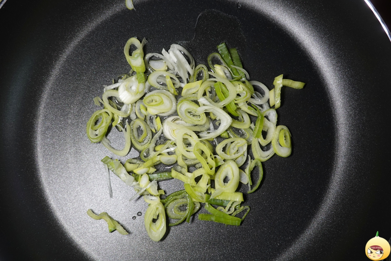 인덕션용 프라이팬이 따로 있는 줄 몰랐다. 인덕션에 이어 프라이팬까지 요리는 역시 장비빨(?)인데, 지출 부담이 크다. 암튼 프라이팬에 식용유를 적당히 두르고, 파를 넣어 파기름을 만든다. 불의 세기는 2~3단계(11단계가 최대)로 해야 한다. 약불로 해야 실패하지 않으니깐.