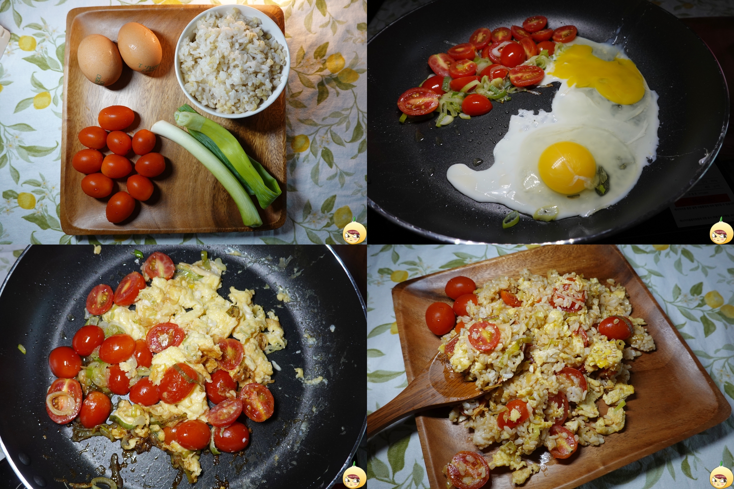 남들은 요리가 쉽다고 하지만, 요리초보는 어렵고도 힘들다. 그래서 엄마찬스는 선택이 아니라 필수인데, 엄마찬스 없이 유튜브 영상만 보고 따라 할 수 있는 요리가 나타났다. 이게 가능할까 싶었는데, 재료 준비하는 과정을 제외하고 정확히 15분 만에 끝낸 방울토마토 달걀 볶음밥이다.