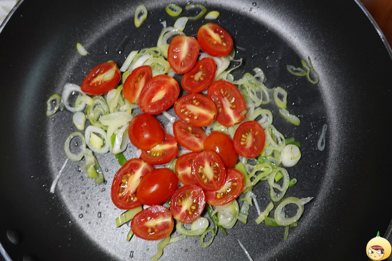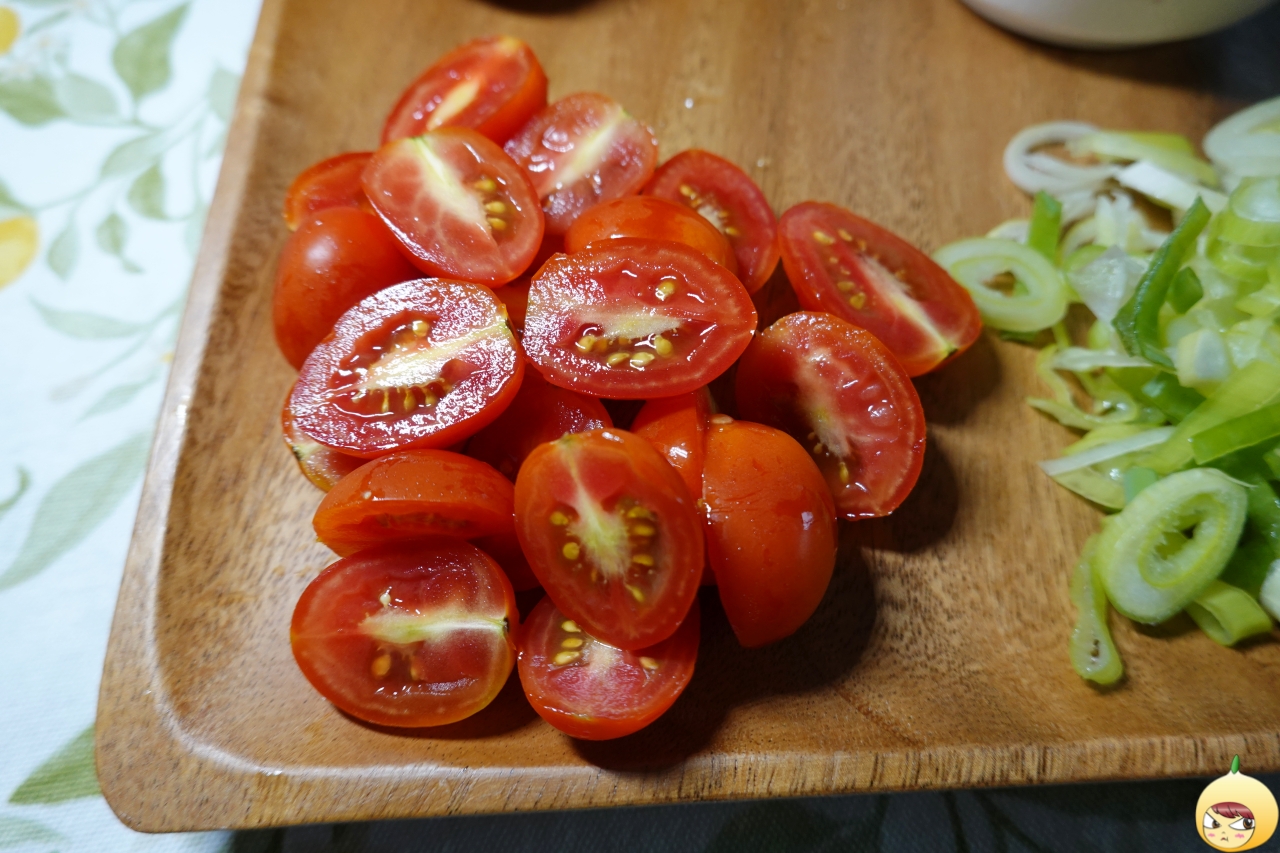 칼질이라고 할 수는 없지만, 방울토마토는 반으로 자르고, 대파는 채를 썰어 준비한다. 요리는 초보이지만, 칼질은 종종했기에 서툴지 않다.