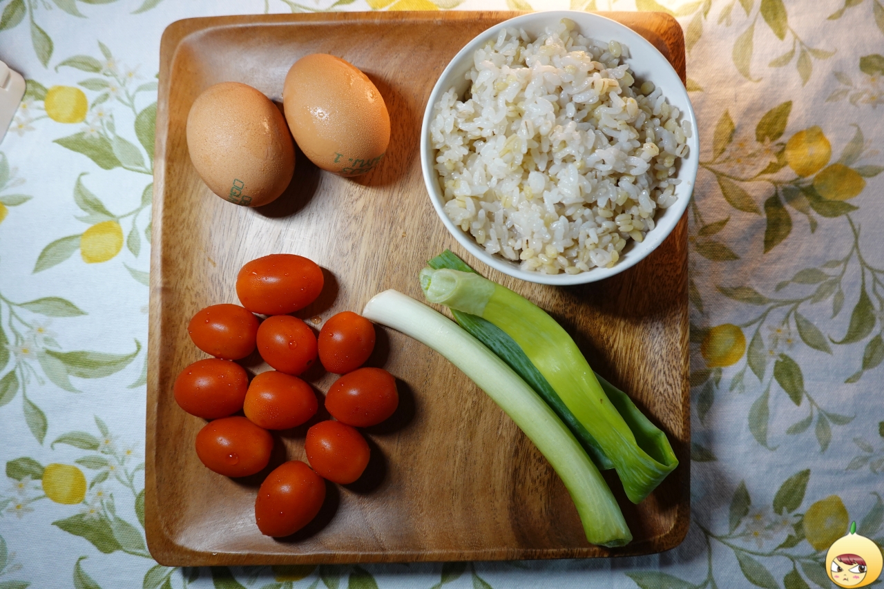재료: 방울토마토 10개, 계란 2개, 파기름을 내기 위해 대파 조금, 볶음밥이니 밥은 필수, 양념은 식용유와 간장, 참기름 그리고 통깨.