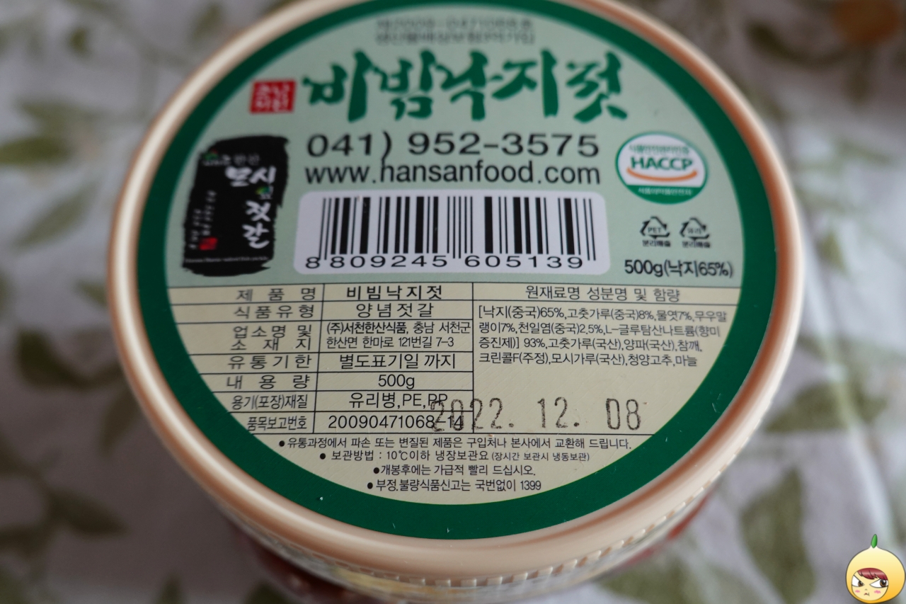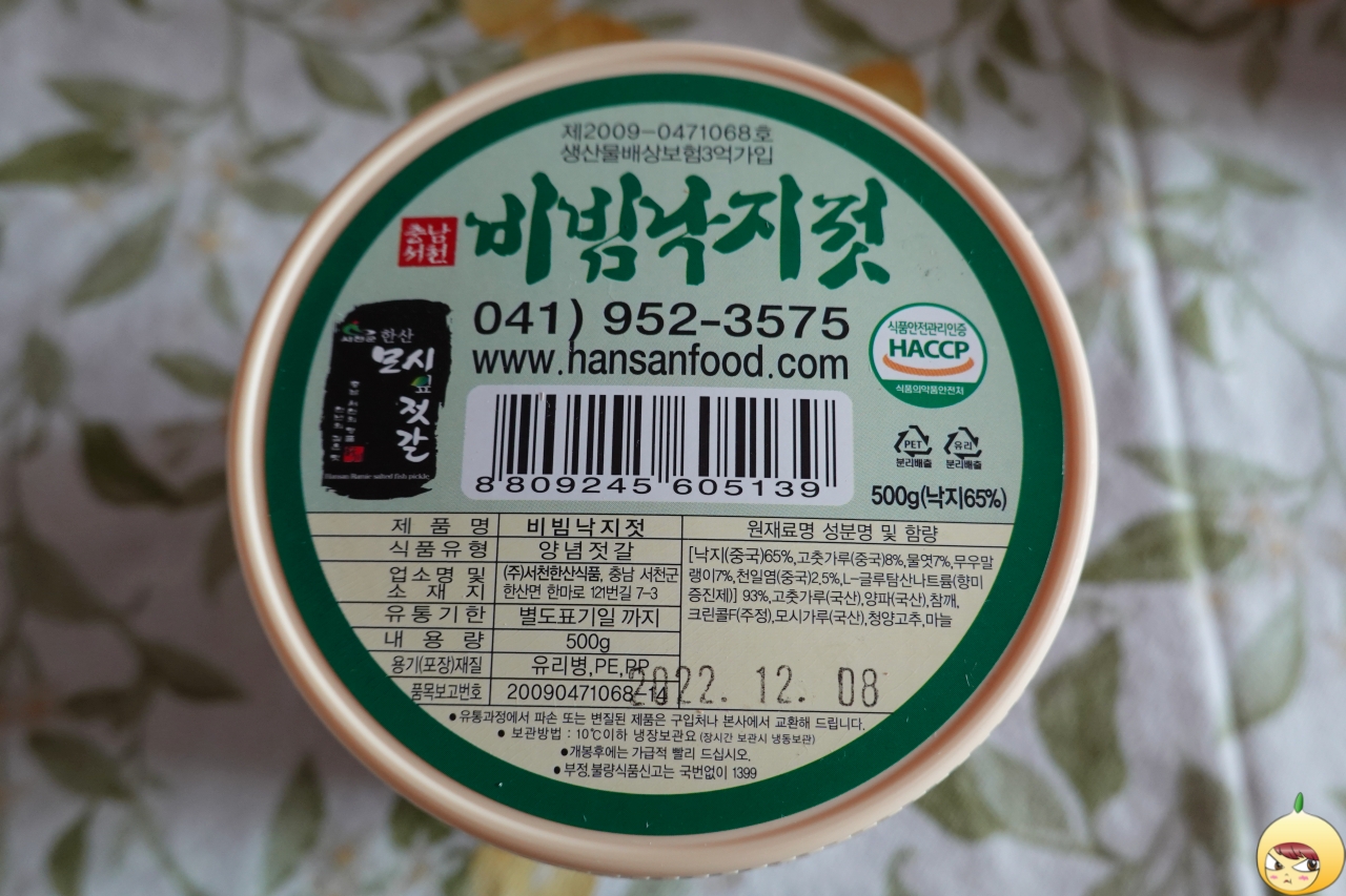 비빔낙지젓은 낙지를 잘게 다져서 담은 젓갈로, 어린이나 치아가 안 좋은 어르신도 부담없이 먹을 수 있는 양념젓갈이다. 지난번에는 일반 낙지젓갈을 주문했는데, 낙지가 어찌나 실하고 통통한지 문어일 줄 알았다. 비빔낙지젓은 낙지 본연의 모습은 찾을 수 없지만, 활용도는 높다. 그냥 먹어도 되고, 비벼 먹어도 되고, 양념장처럼 사용해도 된다. 창난젓처럼 유통기한과 원재료명과 성분 그리고 함량 표기가 잘 되어 있다.