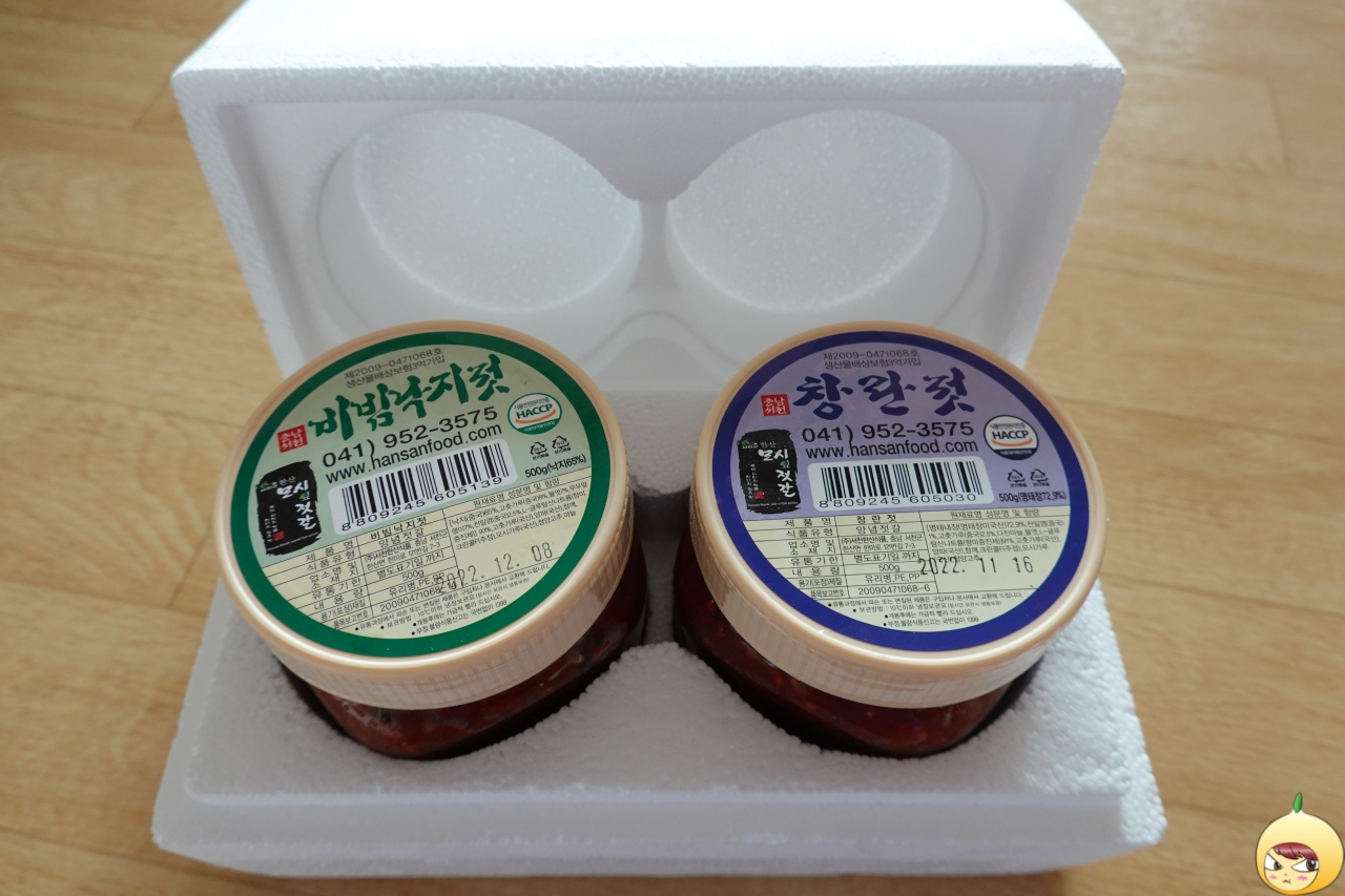 지난번에는 아이스박스만 있었는데, 추석선물세트라고 전용 봉다리(?)가 추가로 들어있다. 나름 신경은 쓴 듯한데, 선물을 보내는 이도, 받는 이도 같은 사람이라서 있어도 그만 없어도 그만이다. 2종은 5가지, 3종은 3가지 그리고 4종은 2가지로, 여기서 종은 개수를 뜻한다. 젓갈은 임의로 정할 수는 없어서, 세트에 나와있는 것 중에서 가장 맘에 드는 3호를 골랐다. 3호는 창란젓과 비빔낙지젓이다.