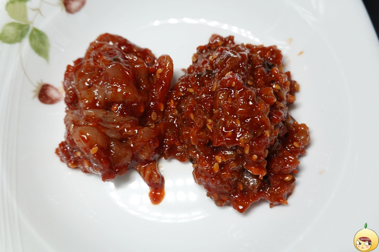예전에는 젓갈을 먹을때 따로 양념을 했는데, 충남 농사랑 한산모시잎젓갈은 굳이 할 필요가 없다. 따로 양념을 하지 않아도 될만큼 완벽하니, 개봉을 하자마자 바로 먹으며 된다. 빨간 양념이지만 매운맛은 거의 없으며, 명태창이 72.9% 들어있다.