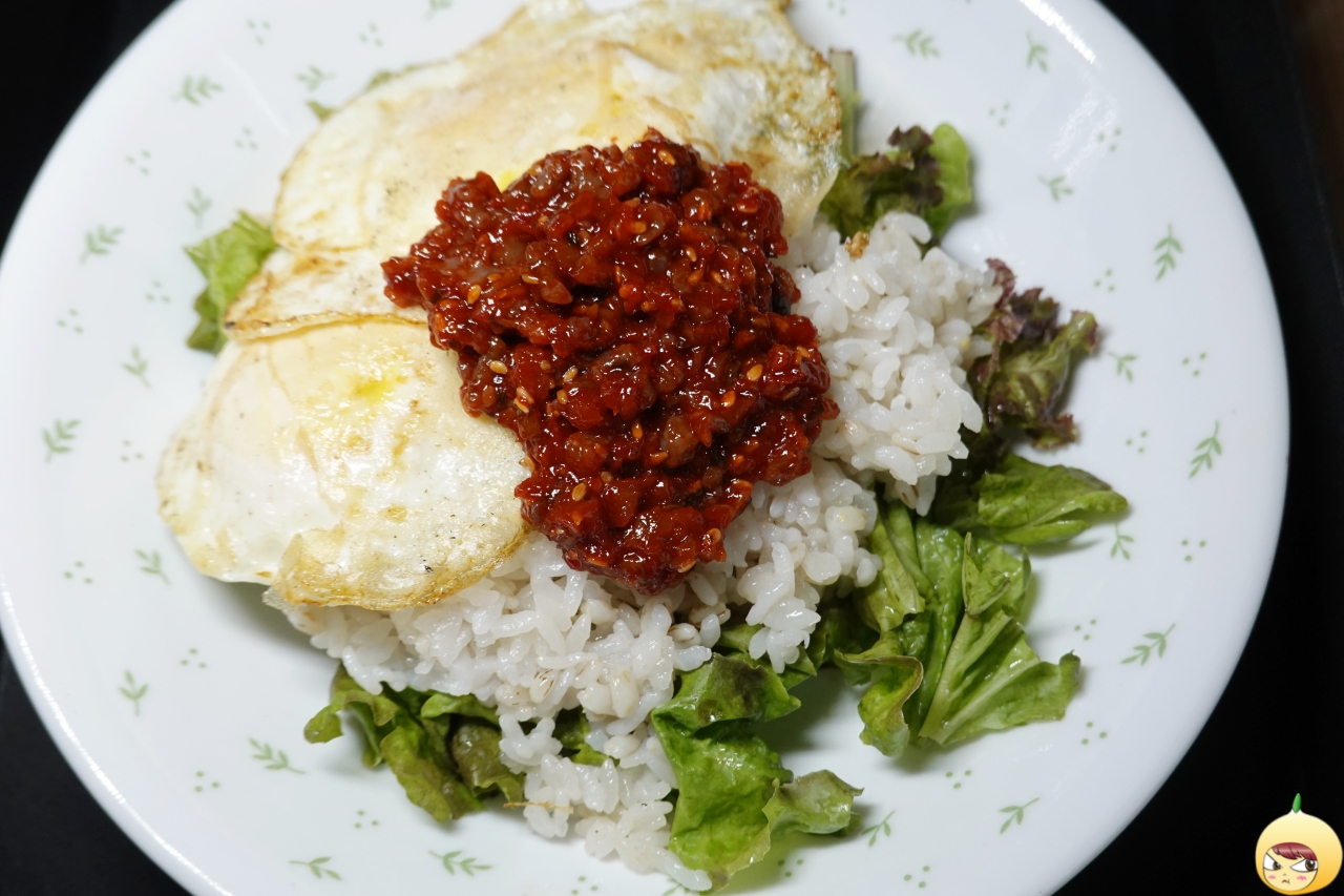 비빔낙지젓이니 비벼야 한다. 이렇게 거창(?)하게 할 필요없이 그냥 뜨거운 밥에 젓갈만 올려서 쓱쓱 비벼도 된다. 나름 제대로 먹고 싶어서, 상추를 깔고 밥을 올리고 계란후라이를 추가했다. 양념간장이나 고추장을 넣어도 되지만, 비빔낙지젓이 있으니 필요없다. 볶음고추장처럼 보이기도 하지만, 비빔낙지젓갈이며 여기에 구운김만 있다면 게임 오버다.