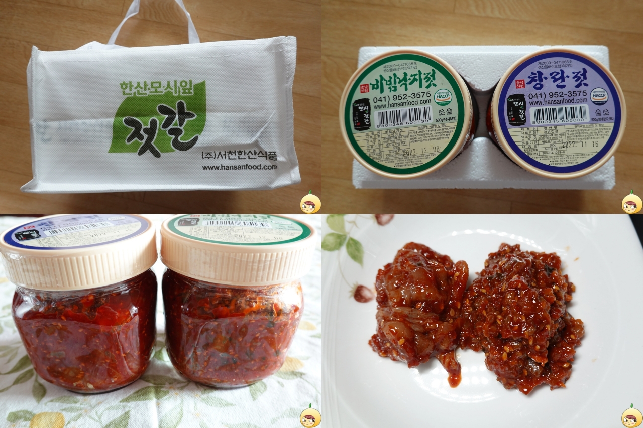 젓갈은 선물을 한 적도 받은 적도 없기에 내가 나에게 주는 선물이다. 가족은 젓갈을 그닥 좋아하지 않아서, 젓갈은 오직 나만 먹는다. 모시송편은 어무이 선물, 젓갈은 내 선물, 곧 받게 될 배는 아부지 선물이다. 충남 농사랑 서포터즈하길 잘했다.