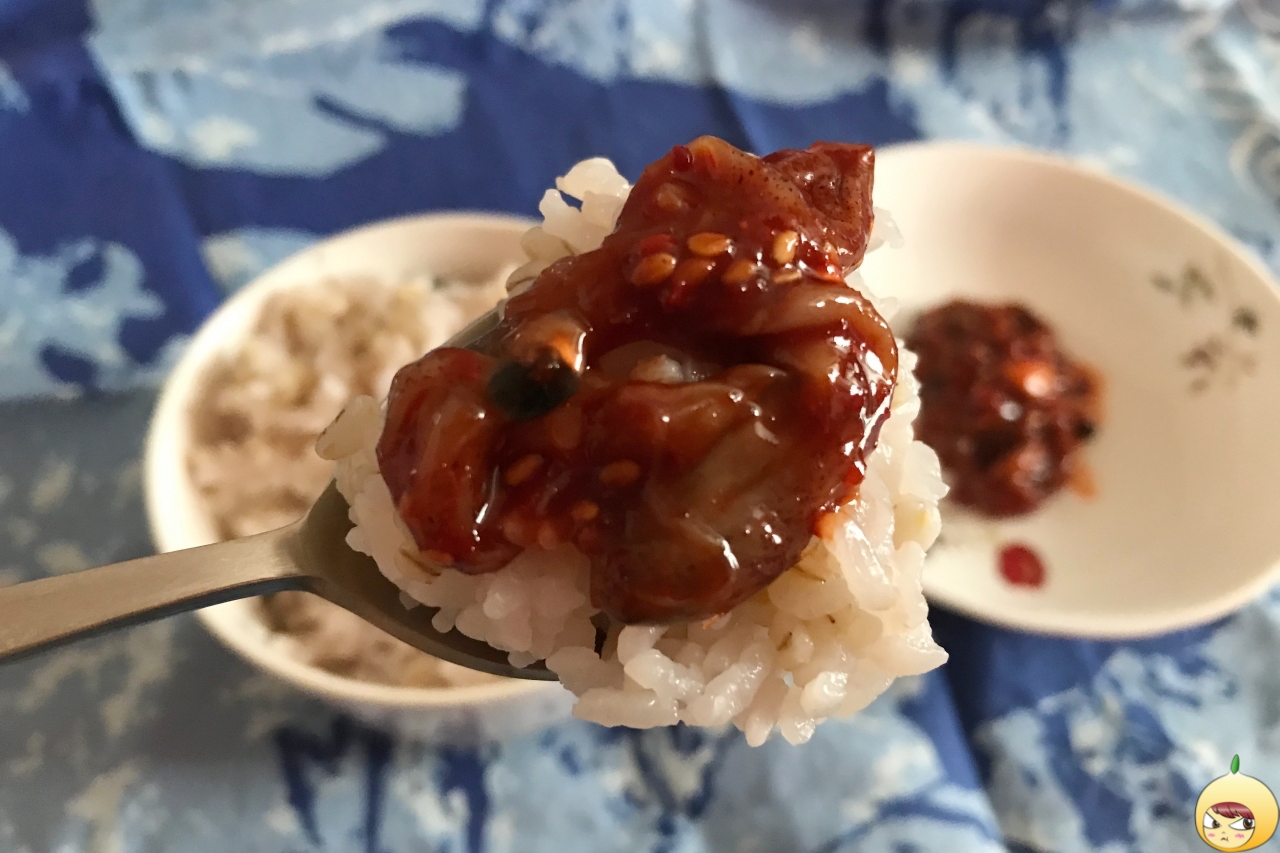 낙지를 다져서 젓갈을 만들자. 처음으로 개발을 사람이 누굴까? 누군지 모르지만, 노벨젓갈상(?)을 드리고 싶다. 일반 낙지젓도 충분히 좋은데 굵기에 따라 자칫 질길 수 있다. 하지만 비빔낙지젓은 낙지탕탕이보다 더 잘게 다져서 질기지 않는다. 다져서 식감은 떨어질 수 있지만, 밥도둑이 아니라 밥대도다. 비빔낙지젓에 낙지는 65% 들어있다.