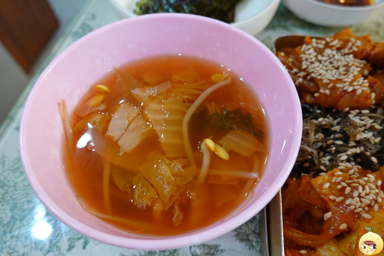 비빔밥 자체가 워낙 훌륭하니 굳이 무언가를 더할 필요는 없다. 반찬으로 나온 김을 올리고, 떡볶이를 더했지만 솔직히 아니다. 그저 콩나물국과 함께 밥만 먹는 게 가장 좋다.