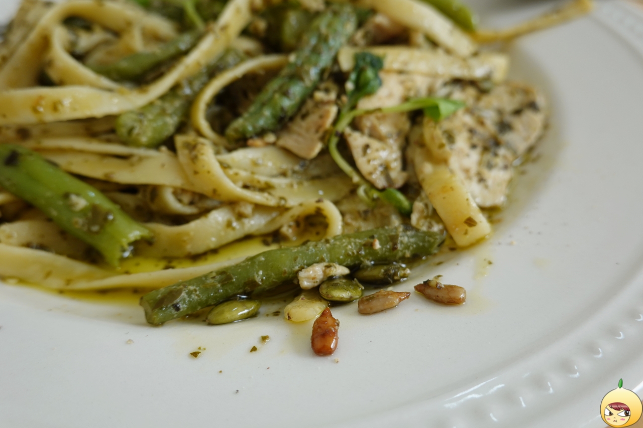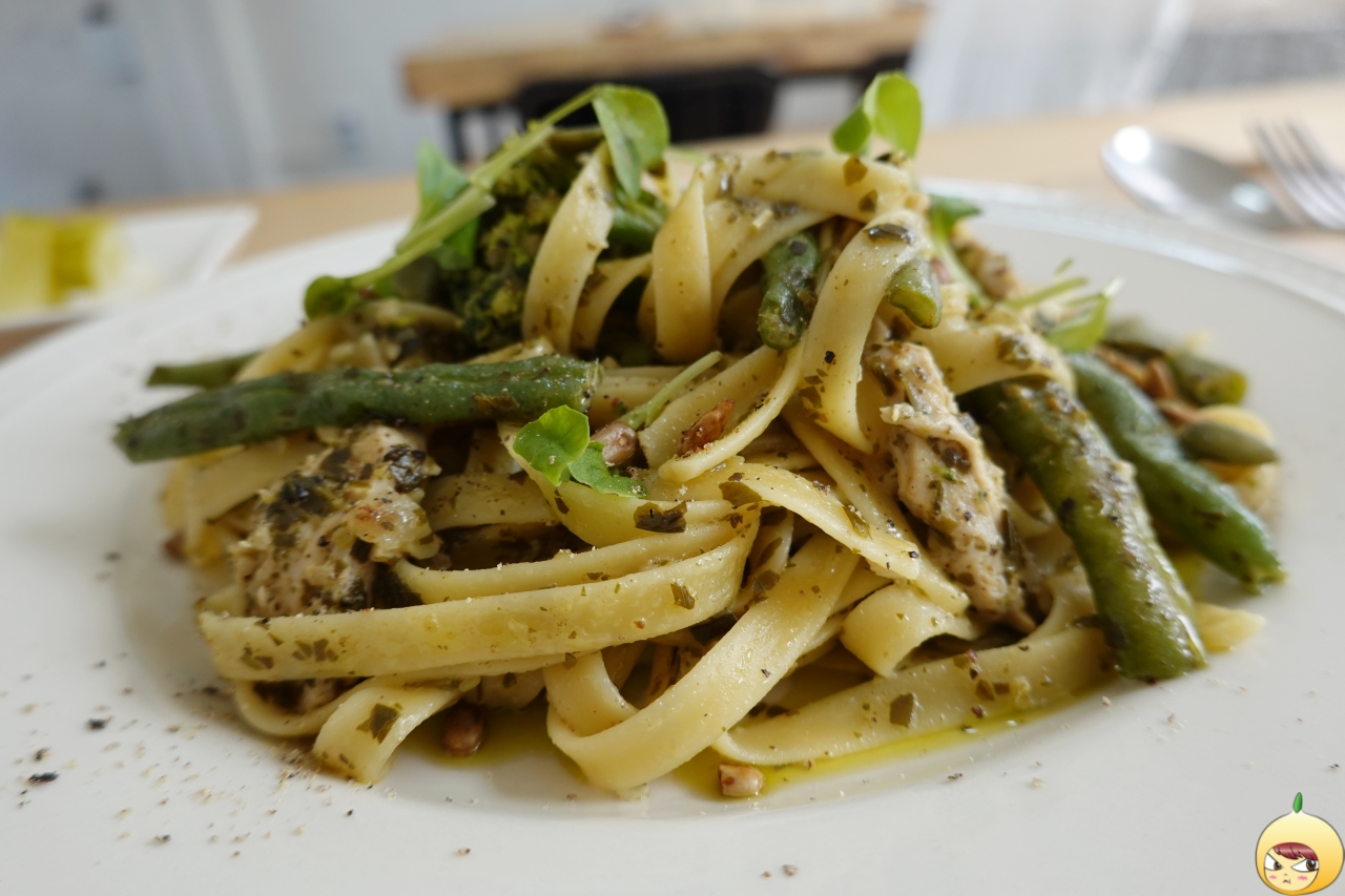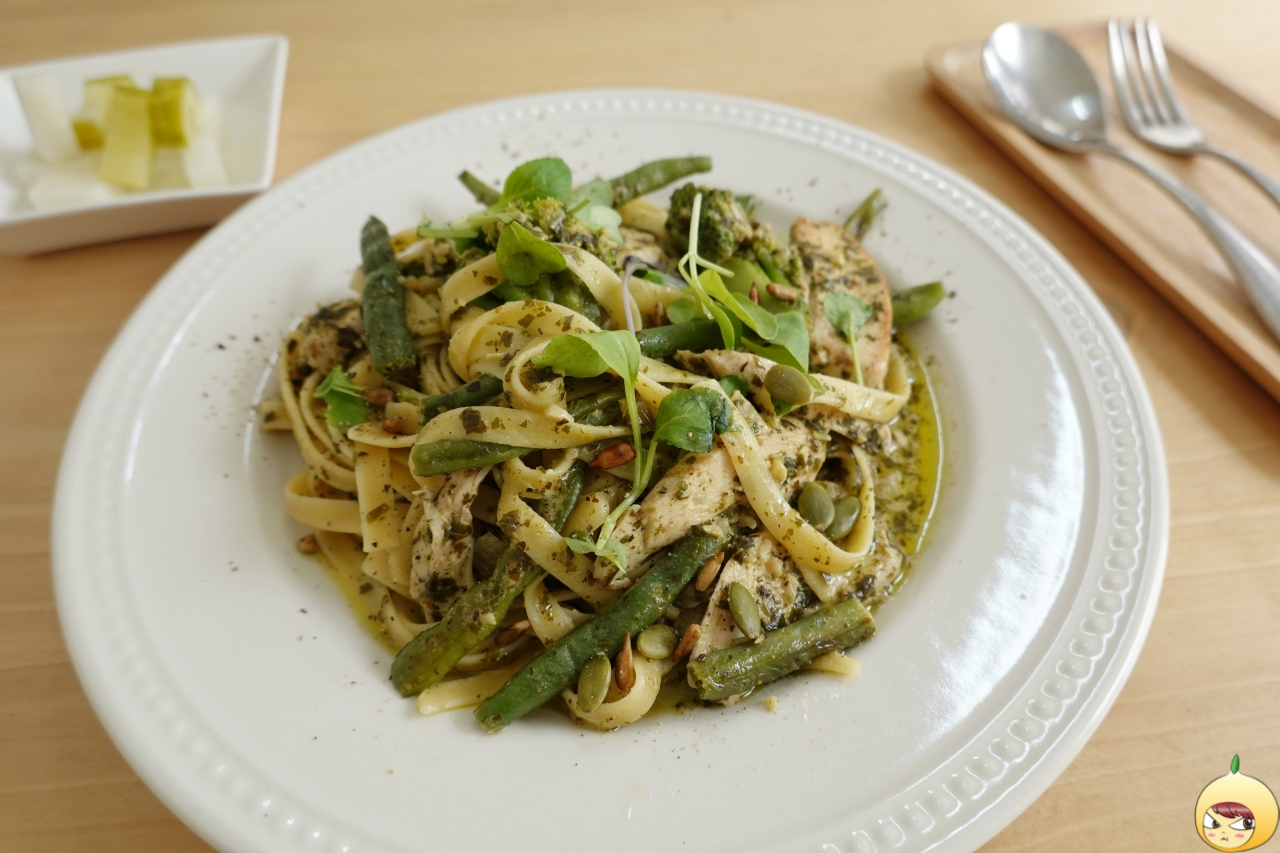 잘 키운 딸 하나 열아들 안부럽다고 하던데, 잘 만든 바질페스토만 있으면 요리초보도 요리고수가 될 수 있지 않을까 싶다. 얇고 넙적한 면에 바질페스토가 가득 여기에 치킨과 콩줄기(일듯) 그리고 씨앗이 들어있다. 파스타가 흔하다 했지만, 러스틱참의 치킨 바질페스토 파스타는 흔하지 않다.