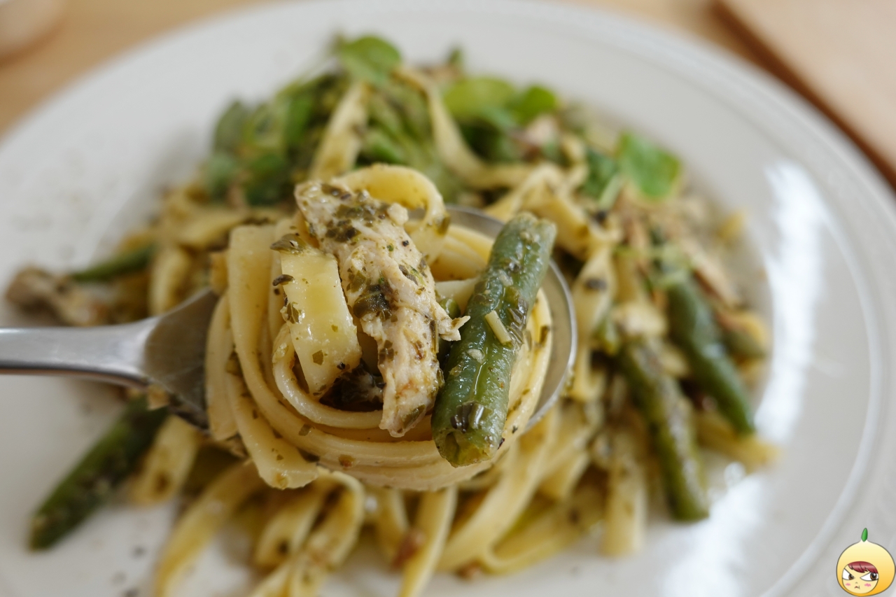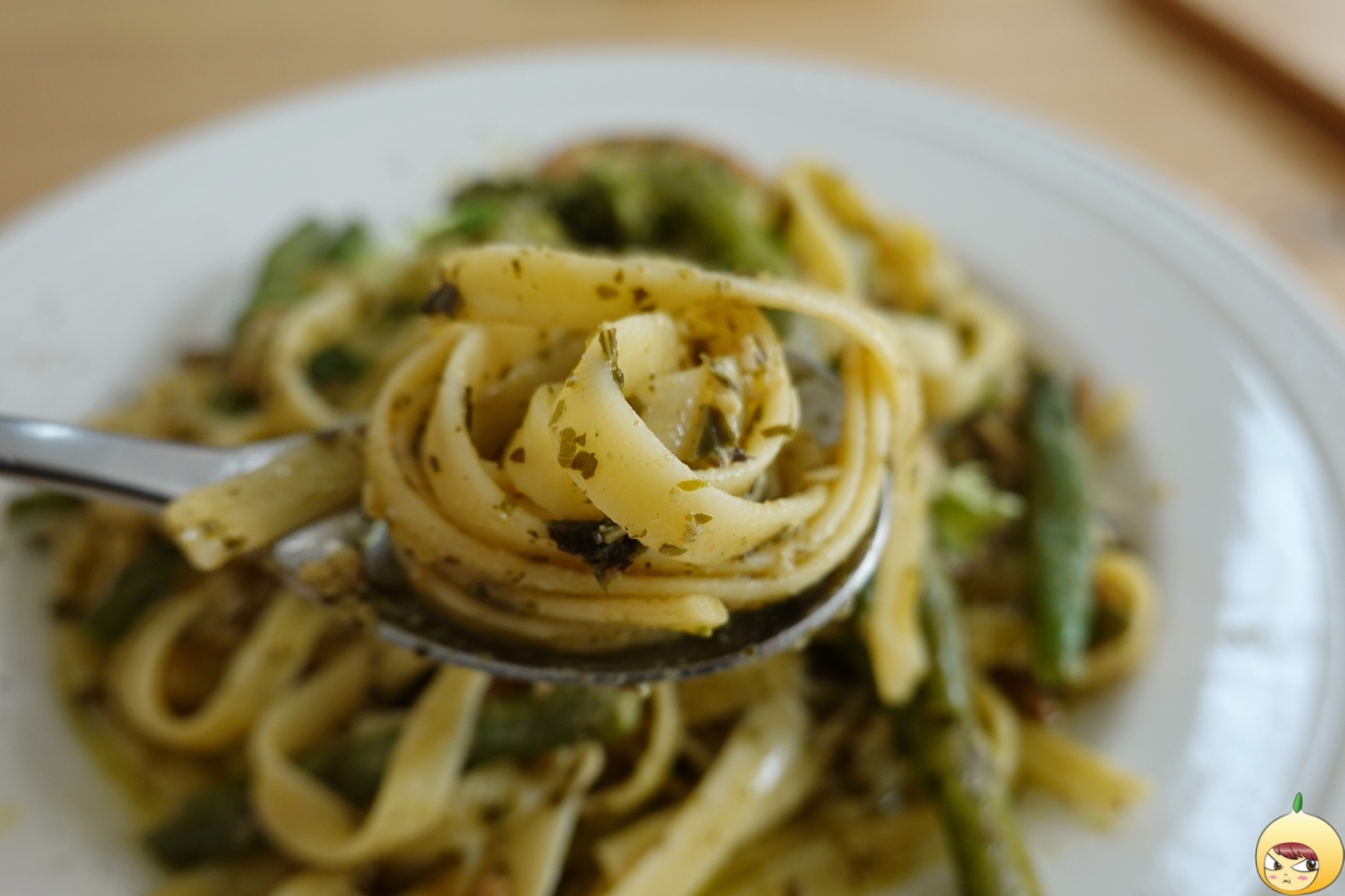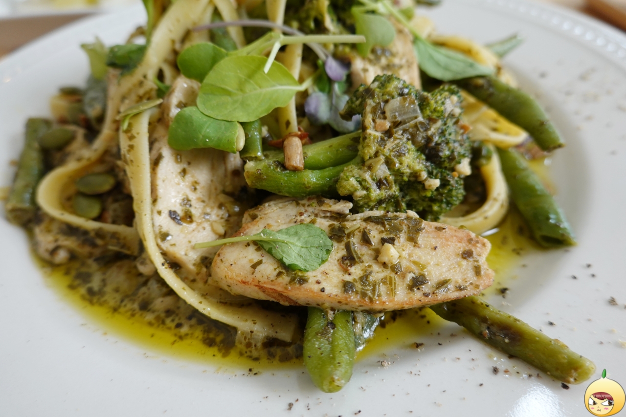 잘 키운 딸 하나 열아들 안부럽다고 하던데, 잘 만든 바질페스토만 있으면 요리초보도 요리고수가 될 수 있지 않을까 싶다. 얇고 넙적한 면에 바질페스토가 가득 여기에 치킨과 콩줄기(일듯) 그리고 씨앗이 들어있다. 파스타가 흔하다 했지만, 러스틱참의 치킨 바질페스토 파스타는 흔하지 않다.
