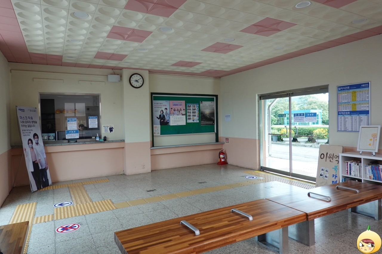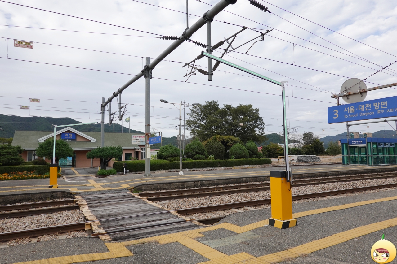 카페, 쿠키렐레에서 나와 한적한 시골마을 풍경을 보면 천천히 10분을 걸어 이원역에 도착을 했다. 옥천역과 달리 이원역은 무궁화호 열차가 매번 정차하는 역이 아니다. 서울로 가는 기차가 하루에 4번 운행을 하는데, 오후에는 1번 뿐이다.