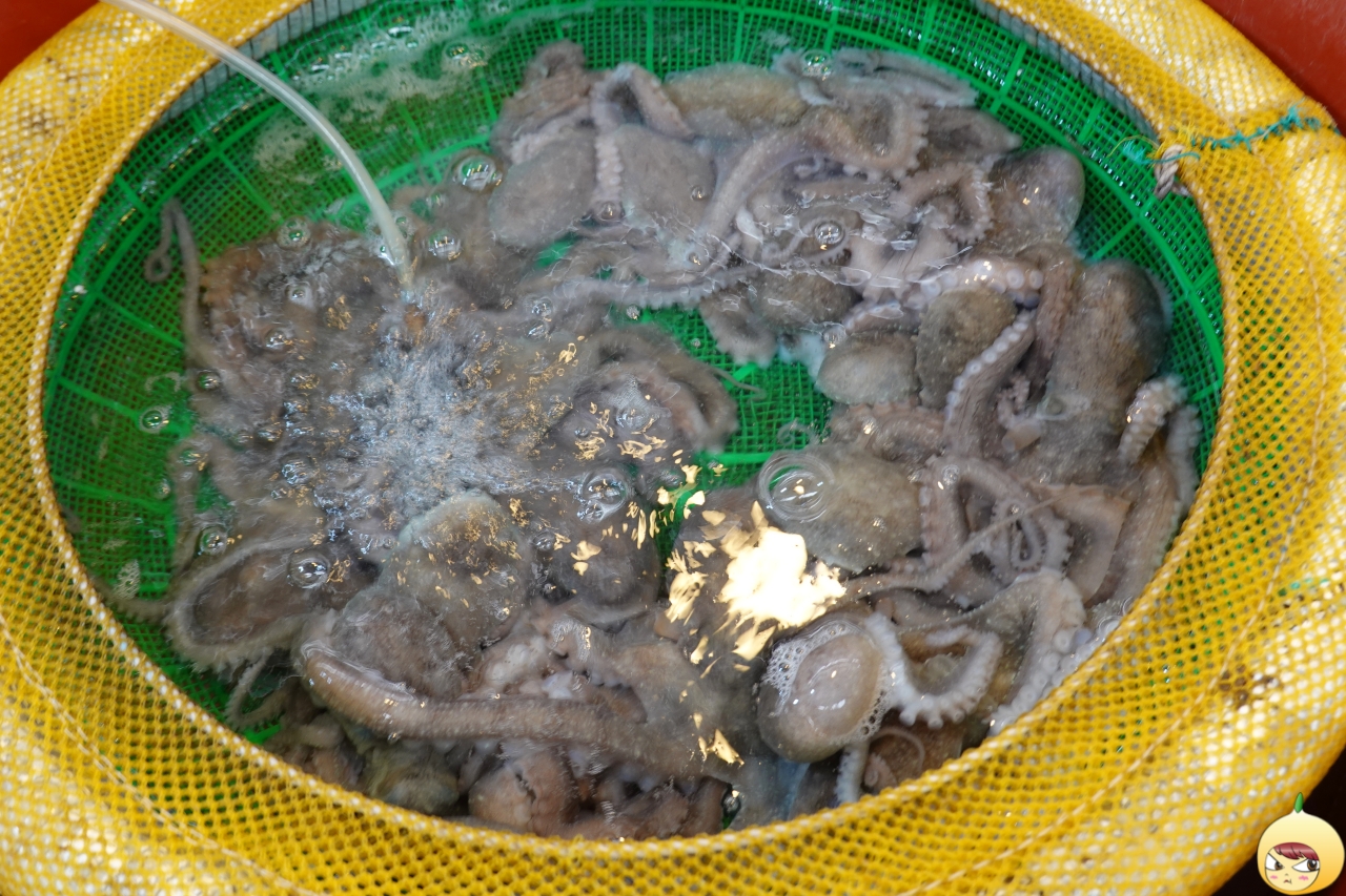 갯벌(뻘)낙지는 순순한 갯벌에서 나는 것으로 피부가 모두 뻘색깔이며, 갯벌에서 기름진 플랑크톤과 갯지렁이 등을 먹고 자라서 영양가가 풍부하고 맛이 좋다고 한다. 주로 서해안에서 많이 잡힌다. 서산에 온 목적이 가을 제철 낙지인데, 아니 반가울 수 없다. 죽어있는 듯 움직임이 없는데, 그렇다고 죽은 건 아니다.