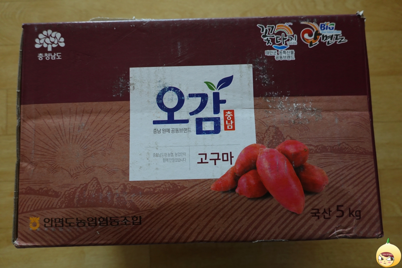 태안 안면도 호박고구마가 유명하다고 해서 충남 농사랑에 상품이 업데이트되는 날을 기다리고 또 기다렸다. 41% 할인으로 5kg에 9,200원이다. 보자마자 2개(10kg)를 구매하려고 하니, 인당 5kg만 가능하단다. 아쉽지만 어쩔 수 없으니, 바로구매를 하고 3일 후 집으로 반가운 택배가 도착을 했다.