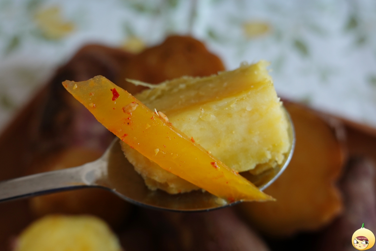 호박고구마는 밤고구마와 물고구마의 장점만 쏙 갖고 온 녀석(?)이랄까? 달달함은 기본, 부드러움은 옵션이다. 수분감이 있어 고구마만 먹어도 퍽퍽하지 않다. 고구마에는 잘 익은 김치를 올려서 먹어야 하는데, 없어서 도시락 반찬으로 즐겨먹었던 단무지 무침을 올렸다. 이건 단무지의 단맛일까? 호박고구마의 단맛일까? 달달함이 넘친다.