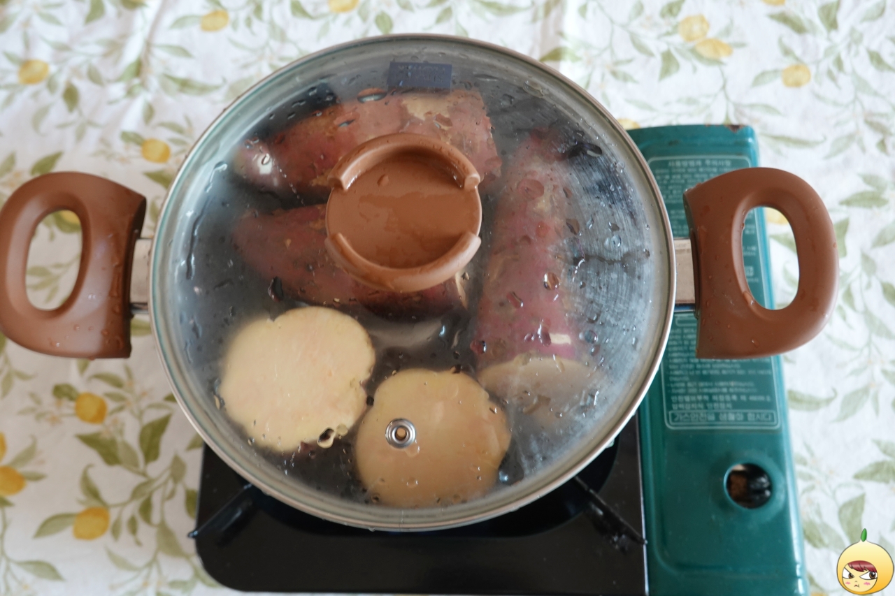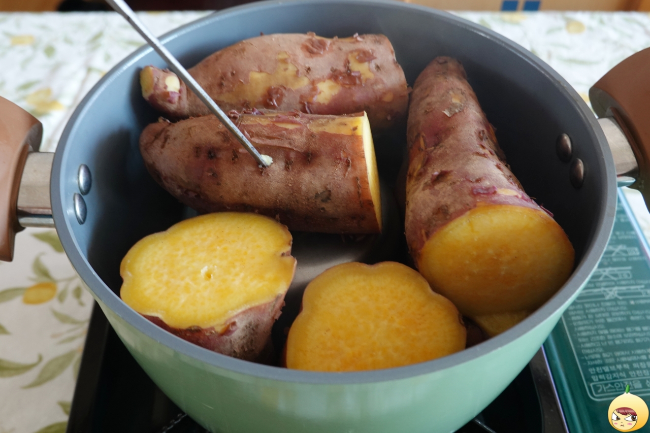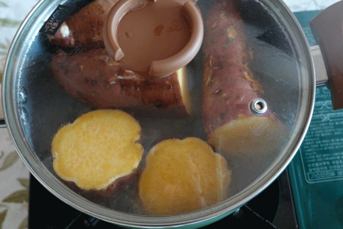 냄비밥과 달리 고구마 삶기는 불조절 없이 강불로 하면 된다. 물이 끓어 바글바글 소리가 나도 불을 줄이지 않고 계속 둬야 한다. 고구마 크기에 따라 삶는 시간은 다르겠지만, 기본적으로 30분은 있어야 한다.
