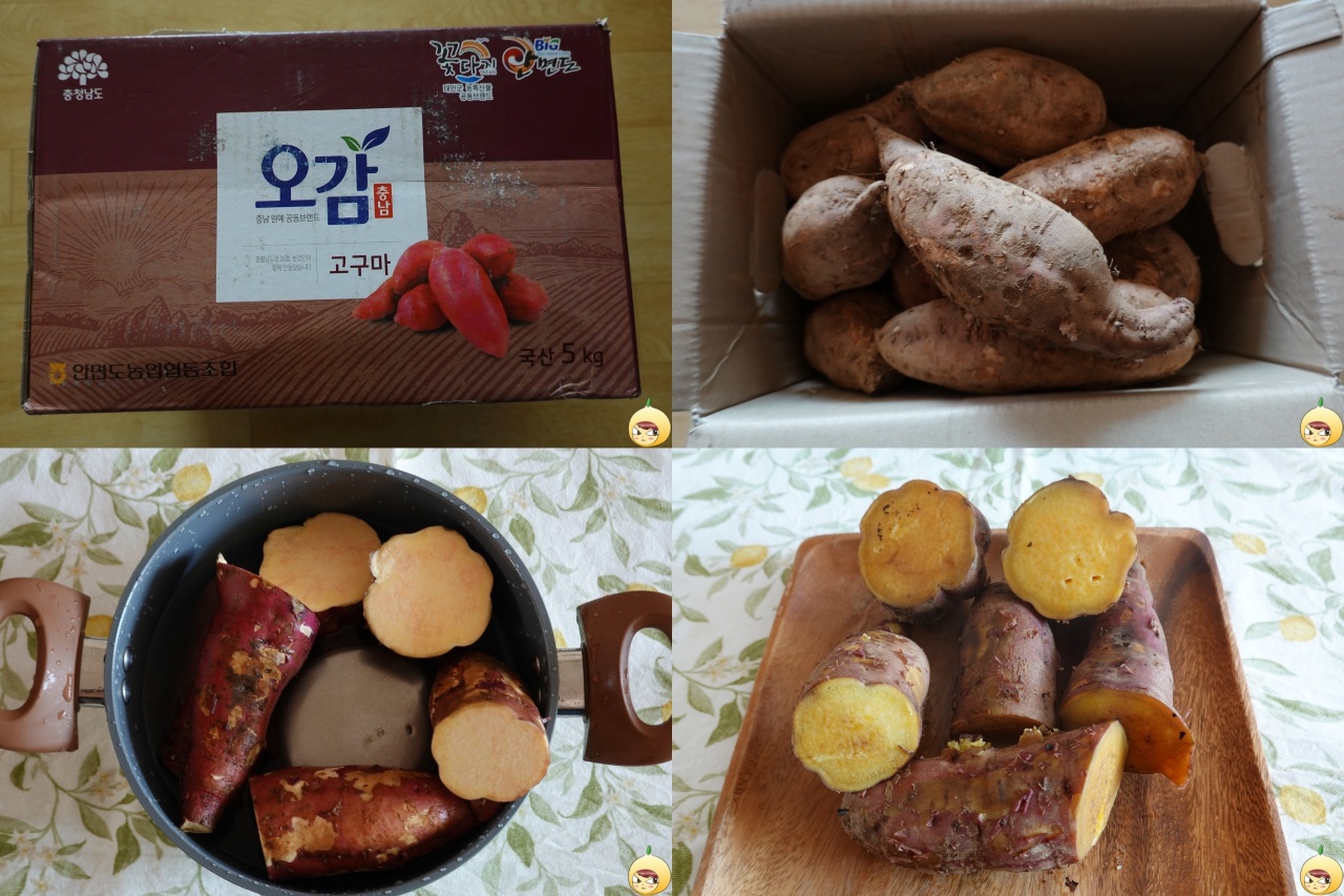 생고구마를 먹기도 했는데, 태안 호박고구마는 수확하고 바로 보냈는지 풋내가 살짝 난다. 생으로 먹는 건 포기하고, 쪄서 먹어야겠다. 그나저나 누가 호박고구마 아니랄까봐, 때깔부터 다르다.