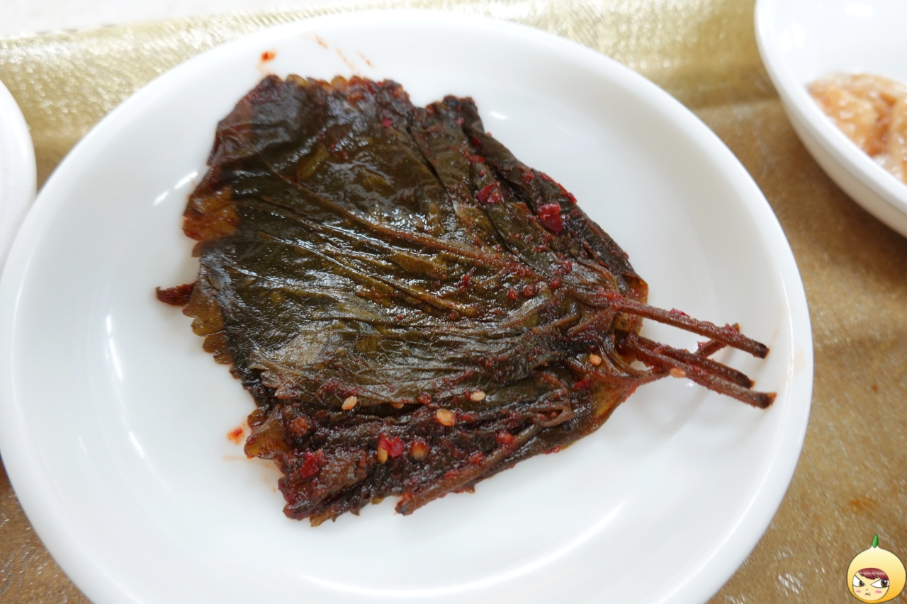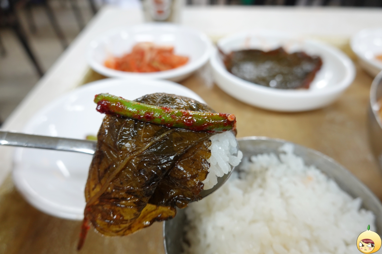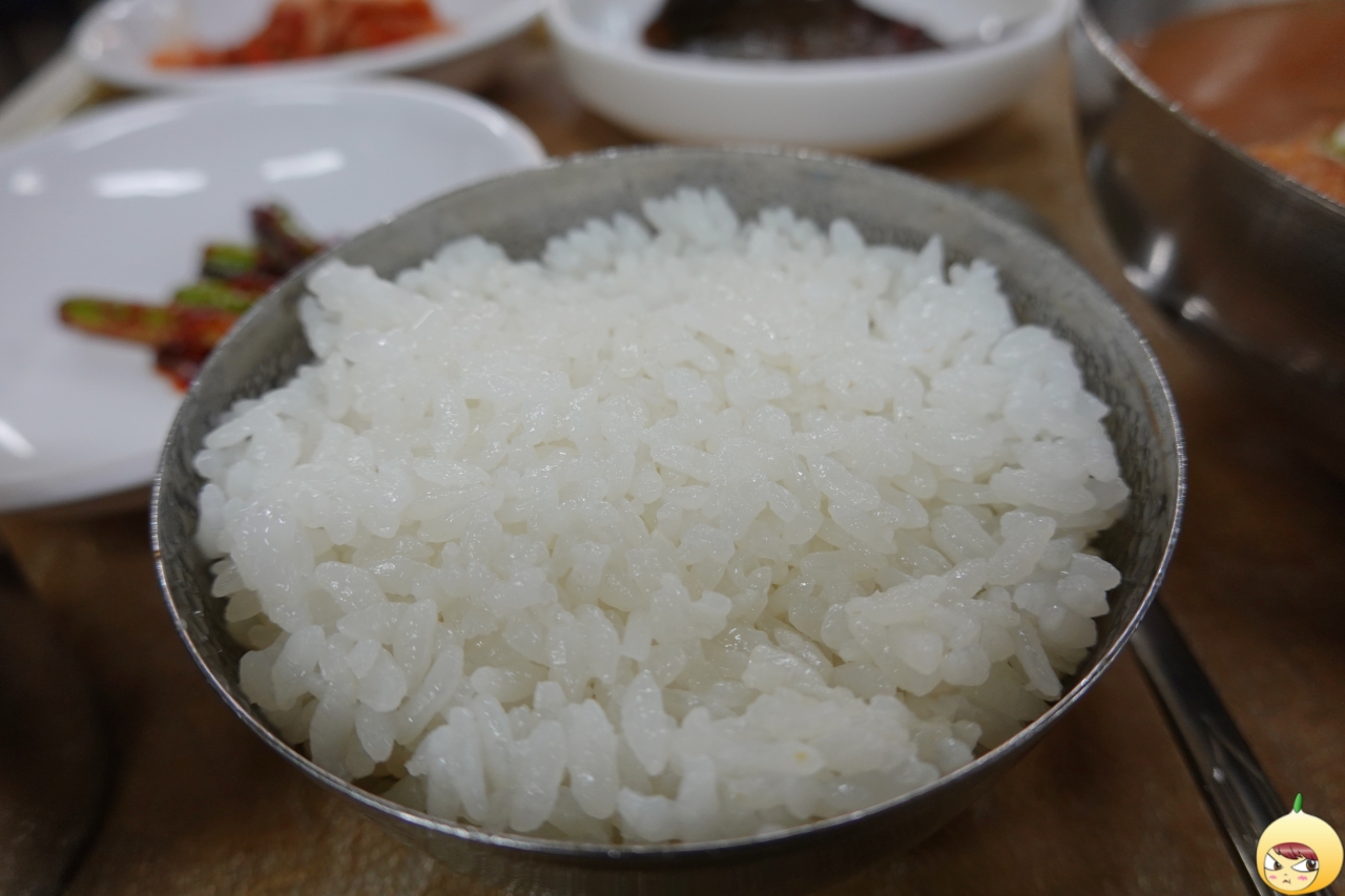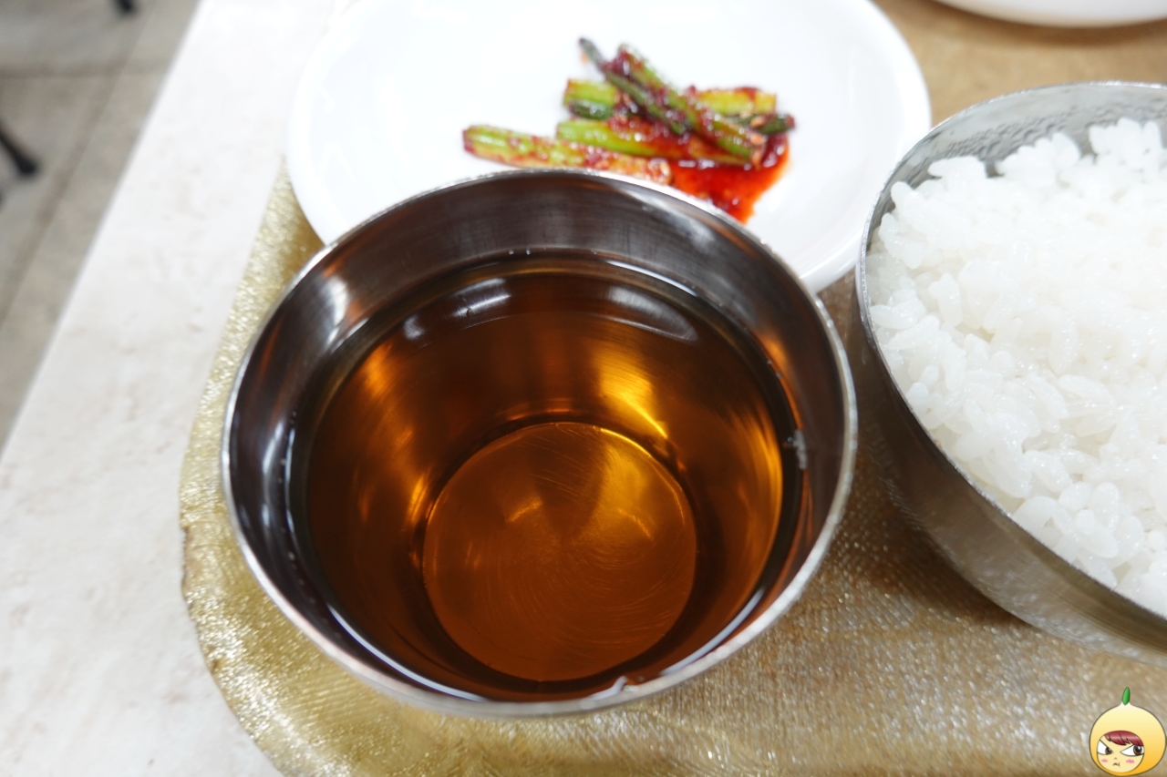 혼밥이니 깻잎논쟁 따위는 개의치 않는다. 숟가락으로 누르고, 젓가락으로 집어서 먹으면 된다. 맹물은 아닌데 보리차 하나만 넣고 끓인 물도 아니다. 무엇을 넣고 끓인 물인지 물어보고 싶었으니, 첫방문이고 부끄러움이 많아서 그저 먹기만 했다. 진밥은 아니고 고슬고슬한 밥이다. 쟁반에 숟가락만 나와서 이게 뭐지 했는데, 젓가락은 테이블에 따로 준비되어 있다.