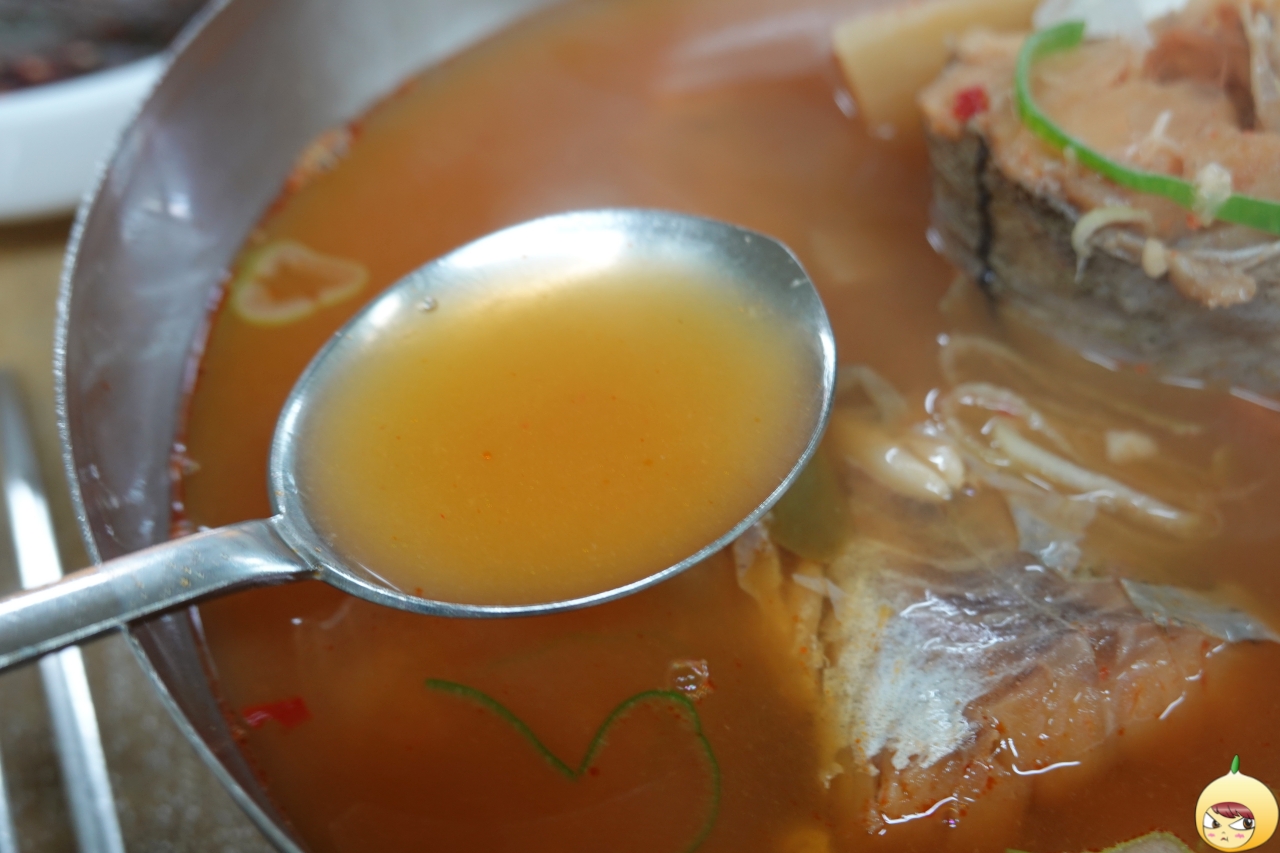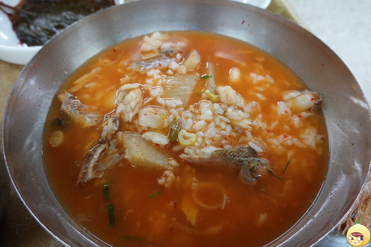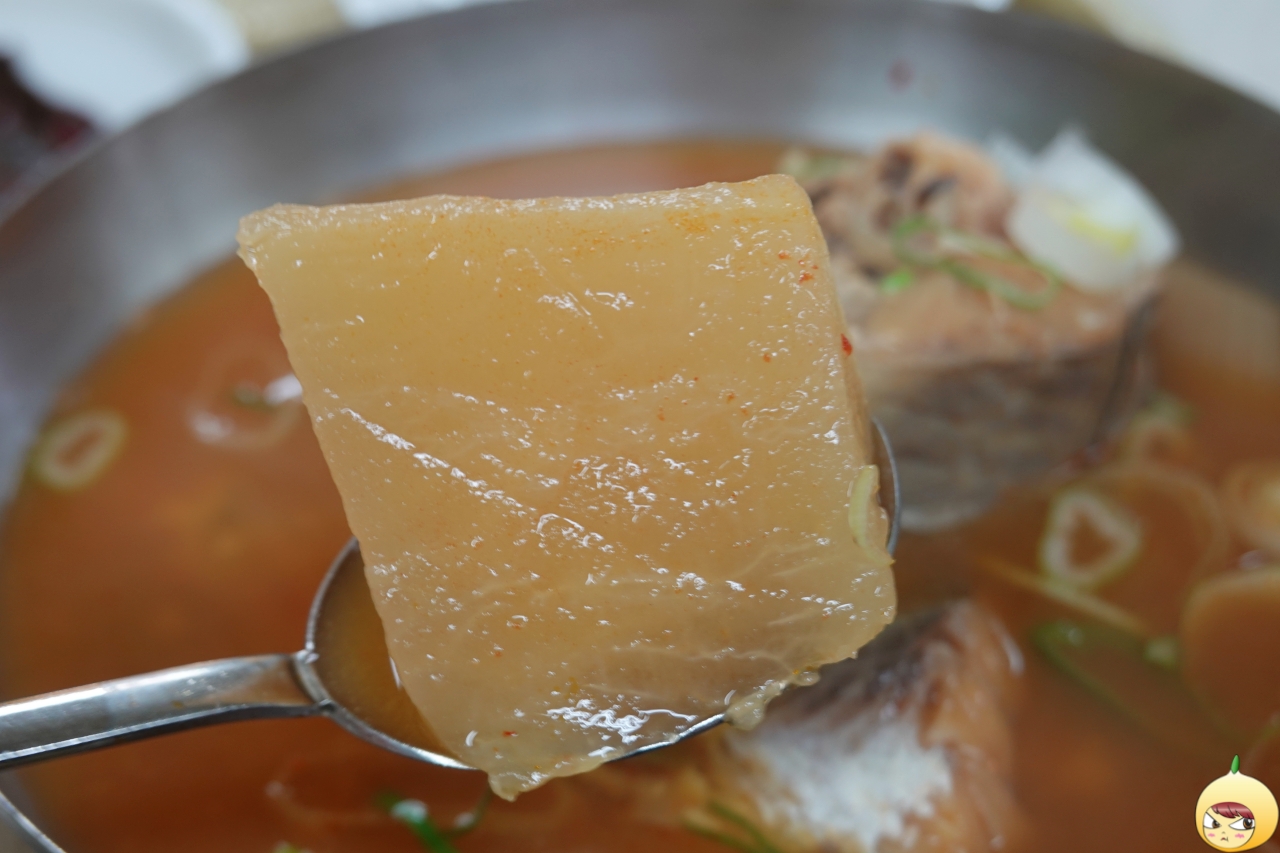 동태는 몸통과 꼬리 이렇게 2개가 들어 있다. 내장은 없는 줄 알았는데, 몸통에 살과 함께 내장과 알이 양은 조금이지만 들어 있다. 국물은 가득이라서 상대적으로 건더기는 부족한 느낌이다. 고기나 내장 추가가 있으면 좋겠는데, 메뉴판에 없는데 따로 물어보기 부끄러워서 걍 참았다.