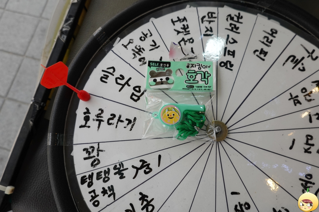 성공을 한 자에게는 선물을 준다. 돌림판을 돌리면 되는데, 꽝은 아닌데 원하는 선물이 나오지 않았다. 주인장에게 혹시 바꿀 수 있냐고 물어보니, 뭘 갖고 싶냐고 되물어본다. 호루라기를 받고 싶다고 하니, 그럼 그걸로 주겠단다. 평일에 공방거리에 간 것은 달고나를 하기 위한 큰 그림이 아니었을까 싶다. 그나저나 달고나를 어떻게 먹으면 좋을까나!