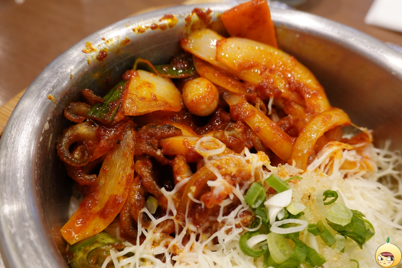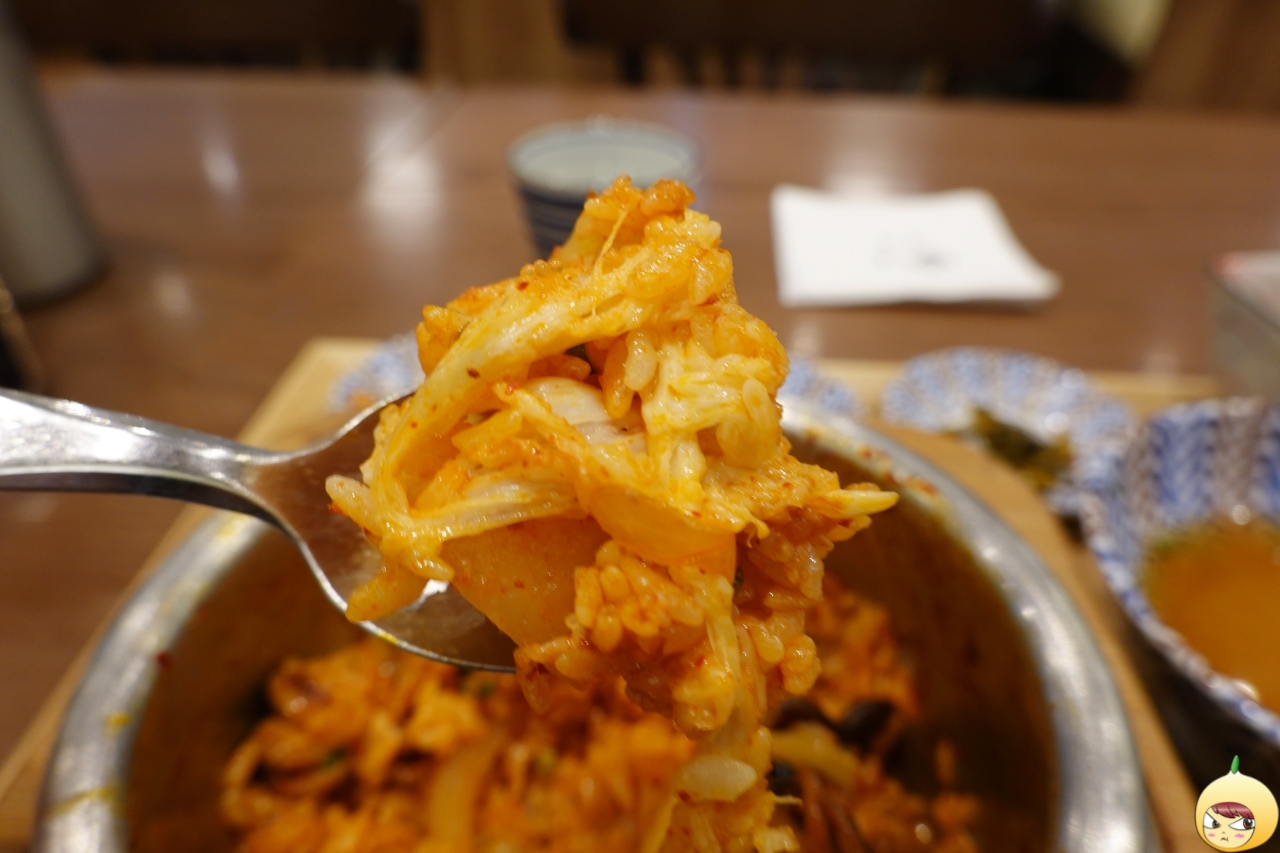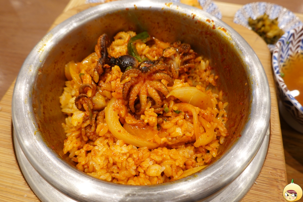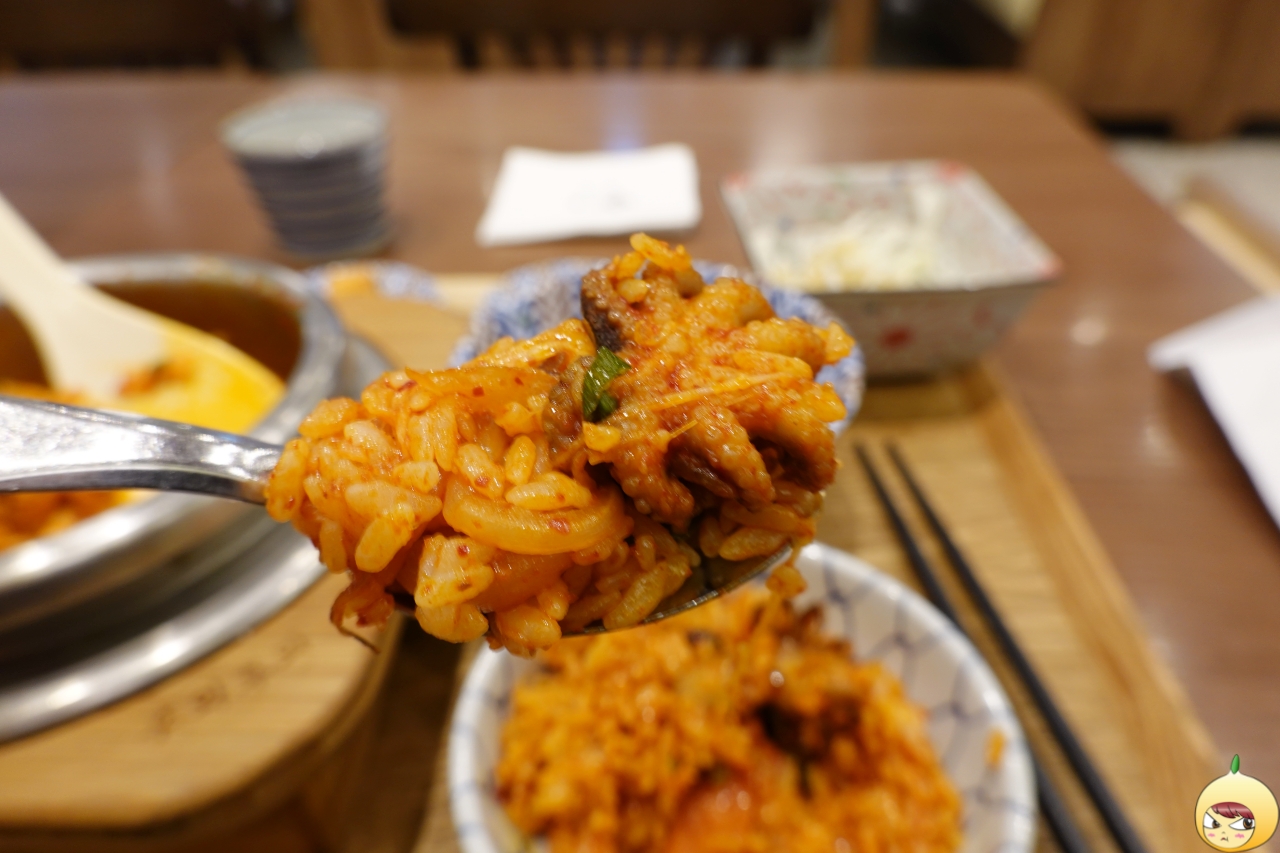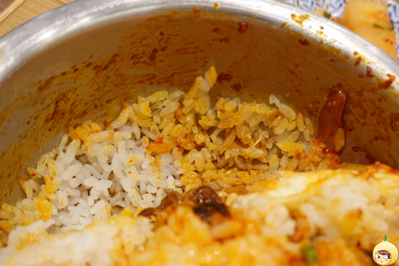 갓지은 솥밥은 치즈와 주꾸미볶음 아래 숨어 있다. 솥밥이니 누룽지는 당근(?)인데, 숭늉은 불가능하다. 일본식 솥밥이다보니, 솥뚜껑도 없고, 숭늉으로 만들 더운물도 없다. 아쉽지만 방법이 없으니, 누룽지만 먹아야 한다. 그나저나 음식명은 주꾸미 날치알 치즈 솥밥인데 날치알을 못찾겠다. 날치알을 가운데에 따로 올릴 줄 알았는데, 아무래도 주꾸미 볶음을 할 때 넣었나 보다.