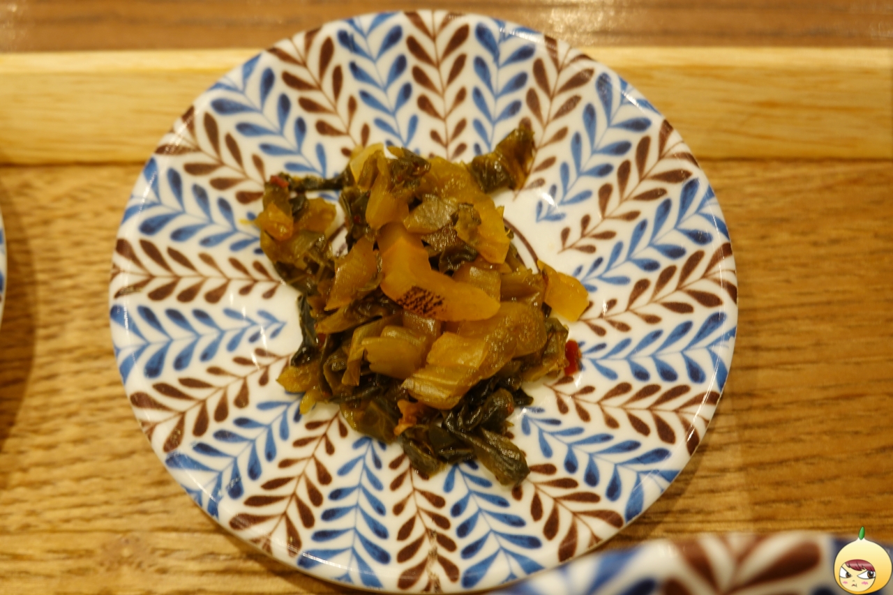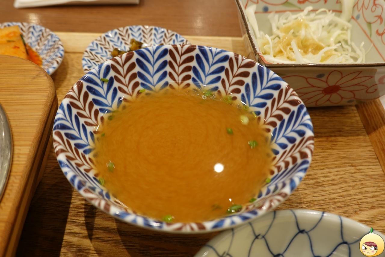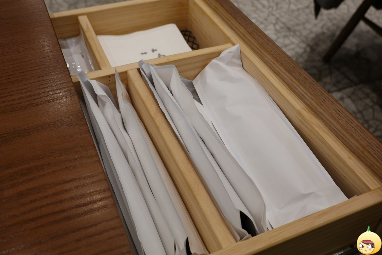 오징어젓갈인 줄 알았는데, 오징어 숙회랄까? 모양새는 젓갈이나 맛은 삶은 오징어를 달달하게 무친 듯 싶다. 깍두기와 된장국은 딱봐도 알겠는데, 우거지? 시래기? 그런데 꽤나 아삭하다. 장아찌 종류인 듯 한데, 정체를 알 수 없어 직원에게 물어봤다. 갓 장아찌라고 해서, 갓김치의 그 갓이라고 물어보니 맞단다. 테이블 옆으로 수저통이 있는데, 각각 포장이 되어 있다.