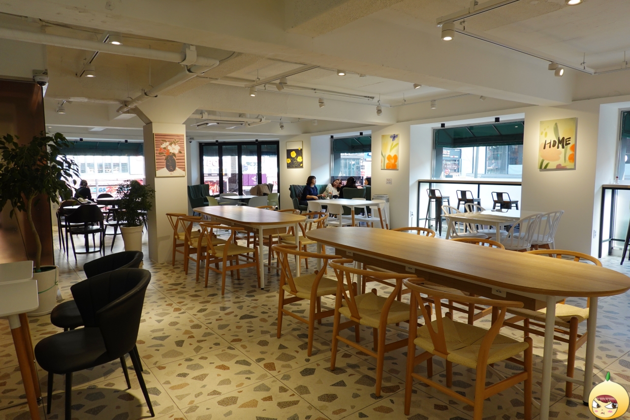 2층 카페 공간으로 올라왔다. 1층과 같은 규모일텐데, 2층은 널찍해서 좋다. 어디에 앉을까 고민하다가, 사진에는 없지만, 벽쪽에 있는 2인 테이블에 앉았다. 혼밥 아니 혼빵인데 굳이 넓은 테이블을 차지할 필요는 없으니깐.