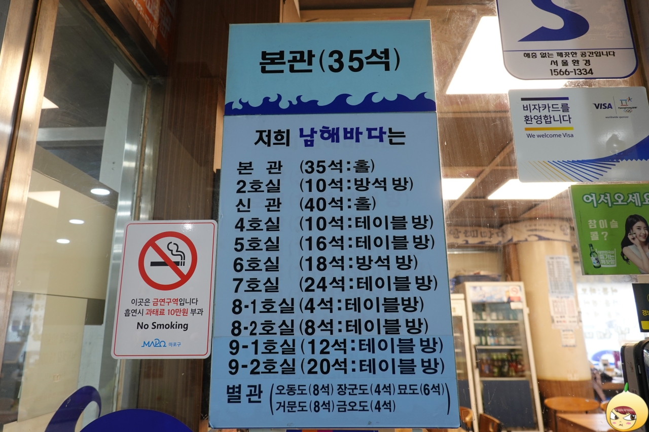 외관과 본관만 보면 규모가 작다고 오해할 수 있다. 하지만, 정우상가 구석구석 남해바다가 존재하고 있다. 아마도 35석 본관에서부터 시작을 했을 거다. 입소문을 타고 사람들이 몰리면서, 땅따먹기를 하듯 공간을 확장했을 거라 추정한다. 혼밥이라서 한산할때 오지만, 12시 언저리에는 빈자리가 없지 않을까 싶다. 그만큼 유명한 곳이기 때문이다.
